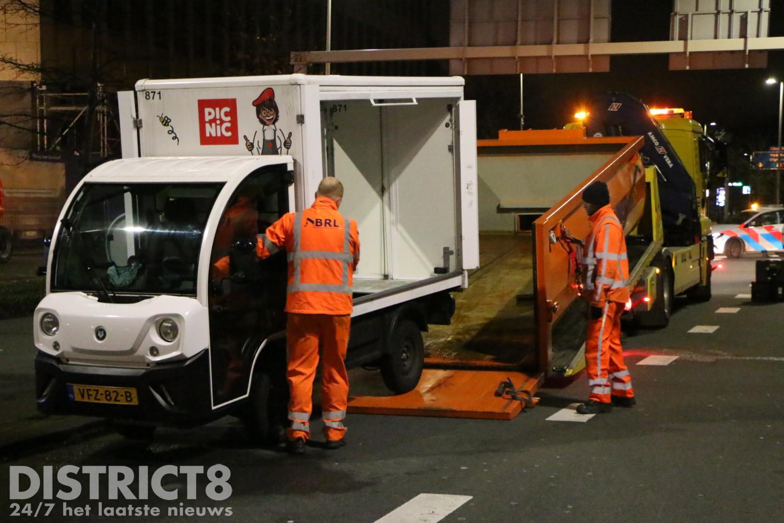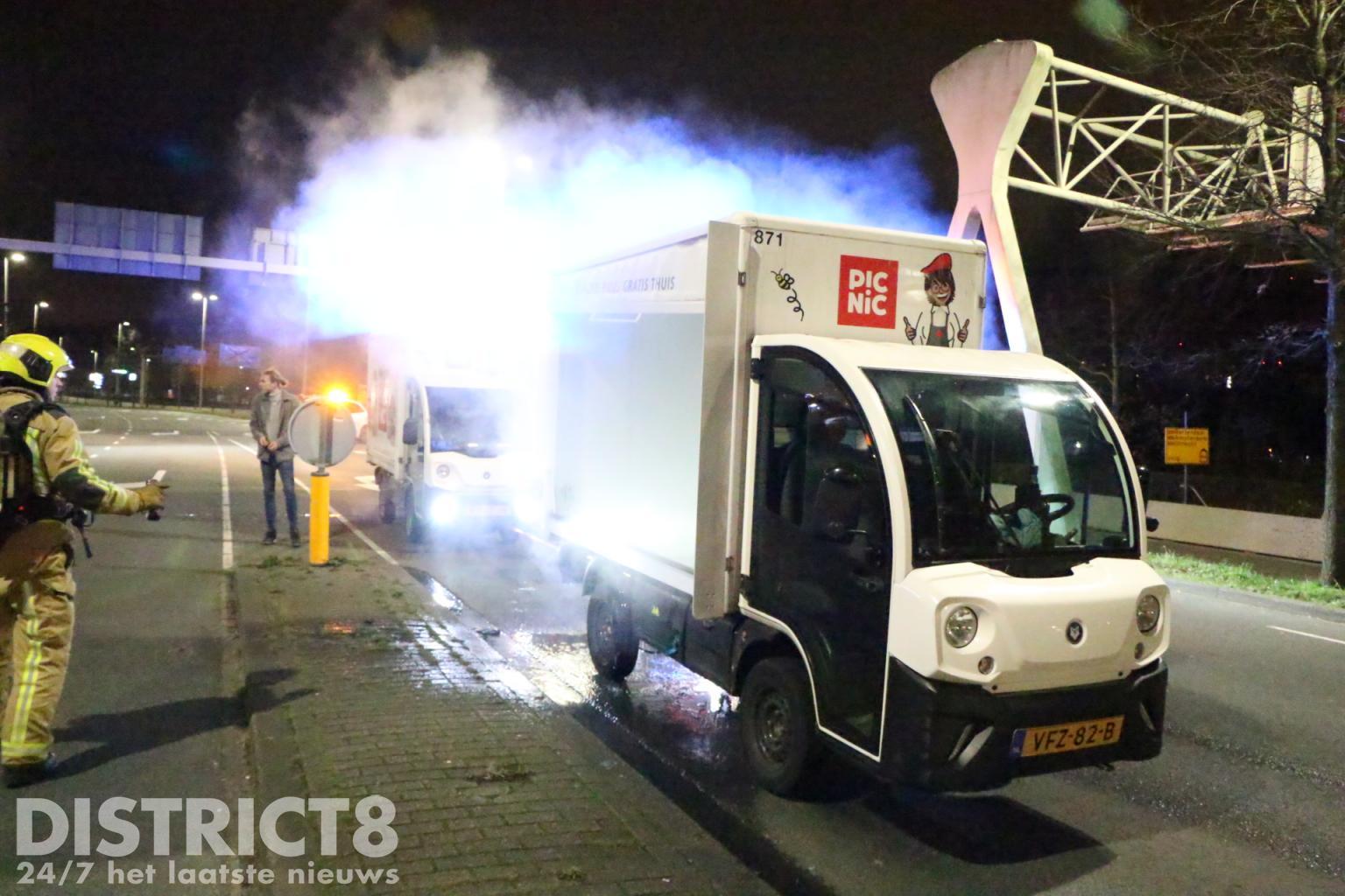 Den Haag – Op de Zuid-Hollandlaan in Den Haag is dinsdagavond een bezorgauto van PicNic in brand gevlogen. Dit gebeurde tijdens het slepen van een andere PicNic bezorgauto.