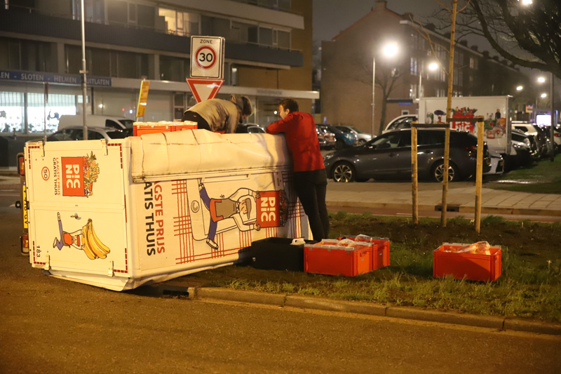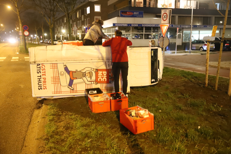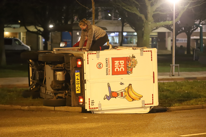 Ter plaatse bleek er door een nog onbekende oorzaak een wagentje van Picnic te zijn omgevallen in de bocht. Het wagentje kwam uiteindelijk in het gras tot stilstand.