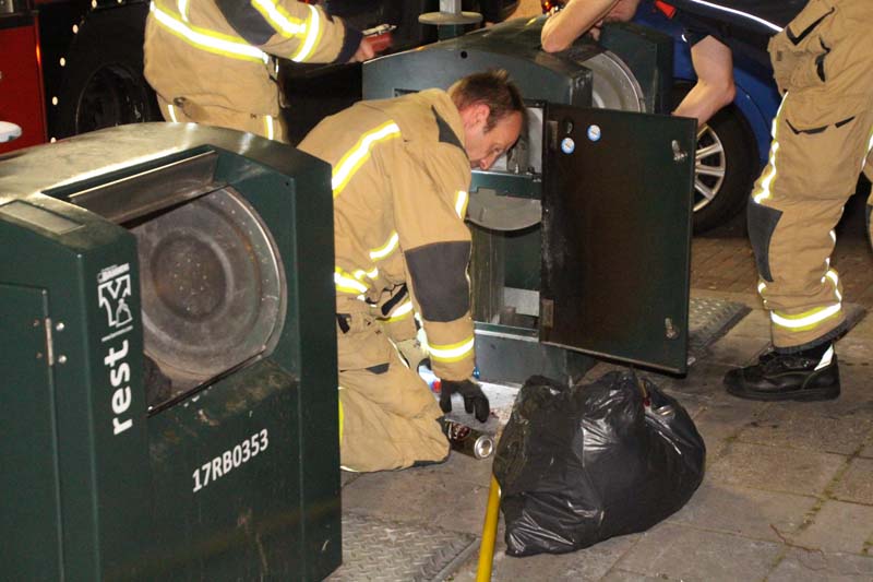 De brandweer heeft in de container een aantal vuilniszakken weggehaald om zo de rookmelder uit te kunnen zetten, echter konden zij er niet bij en hield het gepiep aan. Uiteindelijk hebben zij de container gevuld met blusschuim.