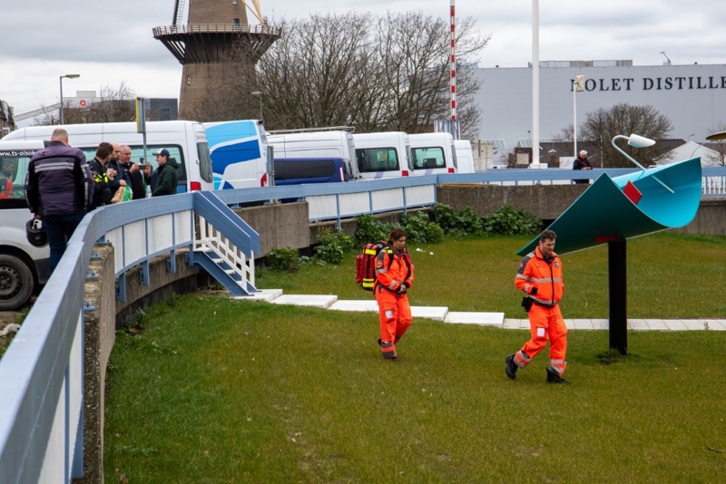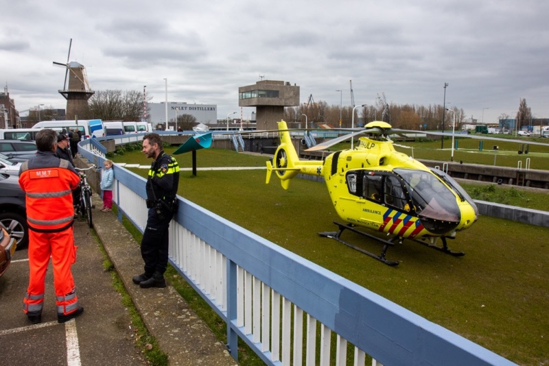 De piloot wist de helikopter op een smal stukje langs de Buitensluis aan de Havendijk neer te zetten.