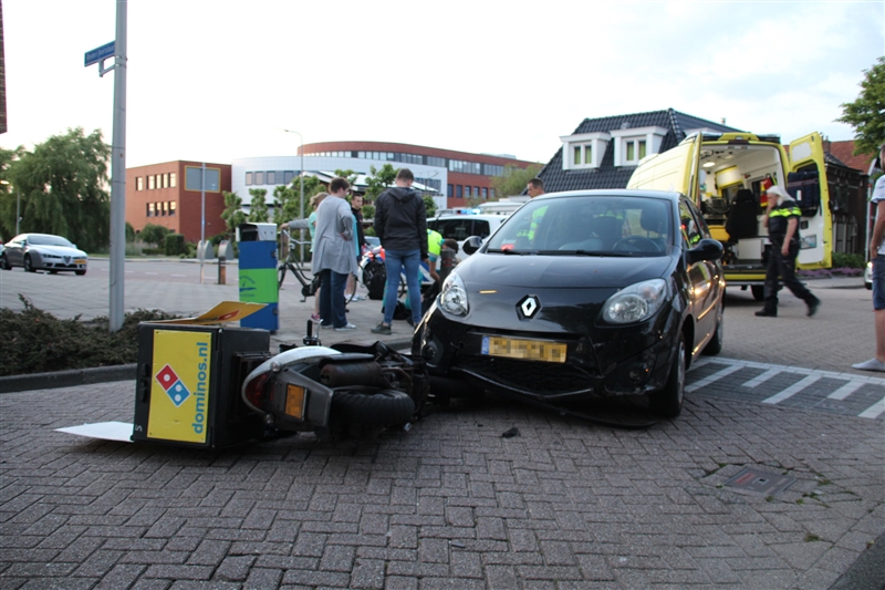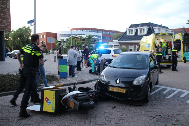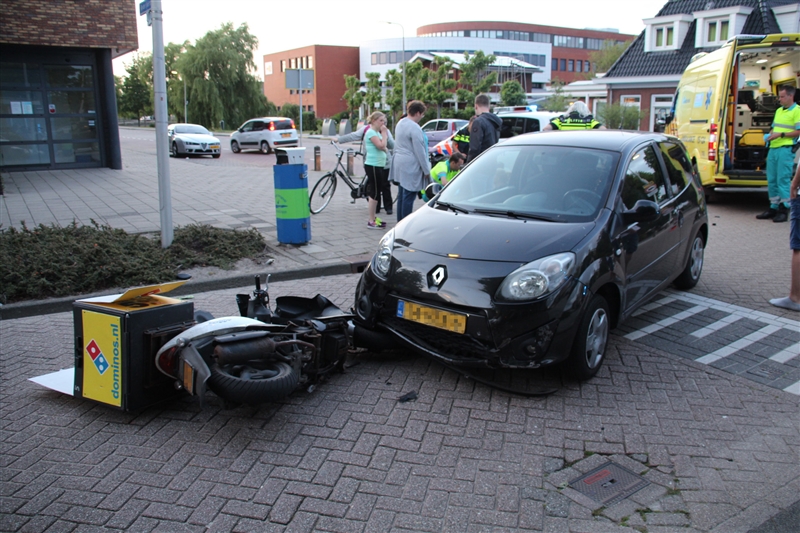 Op de kruising met de klapten de twee frontaal op elkaar, waarna de pizzabezorger ten val kwam. Hij raakte gewond aan zijn been. Ambulancepersoneel en de politie zijn met spoed ter plaatse gekomen. De jongen is behandeld in de ambulance, maar bleek niet vervoerd te hoeven worden.