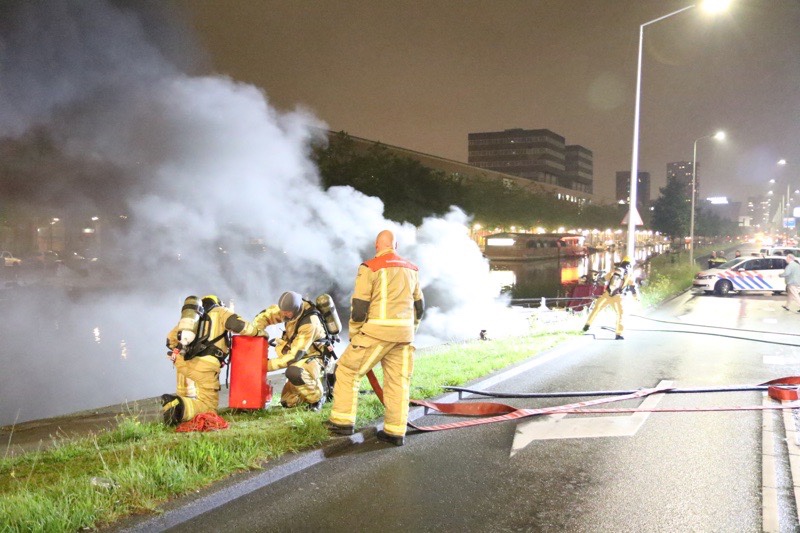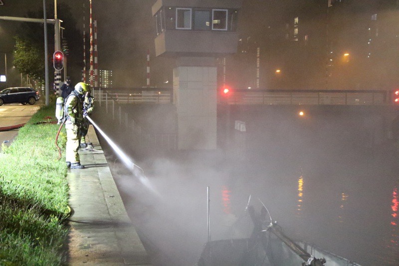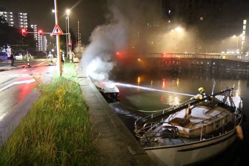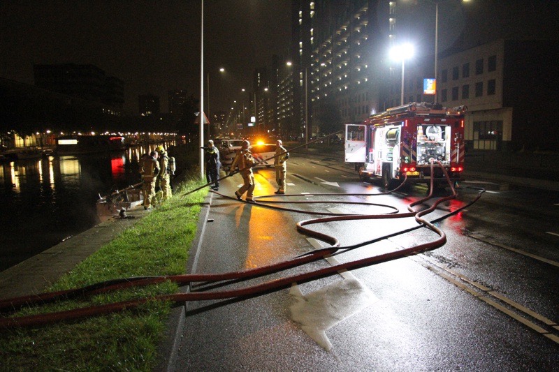 Even voor middernacht werden de hulpdiensten gealarmeerd dat er een boot in brand zou staan. De brandweer begon ter plaatse direct met blussen en de politie sloot de Neherkade af voor het verkeer.