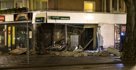 Rotterdam – In de nacht van maandag op dinsdag 5 februari is er een plofkraak gepleegd op een pinautomaat van de ABN-AMRO in Rotterdam-Hillegersberg. Bij de explosie aan de Van Beethovensingel werd de complete gevel opgeblazen. De daders, vermoedelijk 3 personen, zijn er daarna in een auto vandoor gegaan. De brokstukken lagen in de omgeving verspreid. De politie sloot de straat af voor het onderzoek. De bewoners boven de pinautomaat kunnen in hun woningen blijven, ondanks de opgeblazen gevel.
