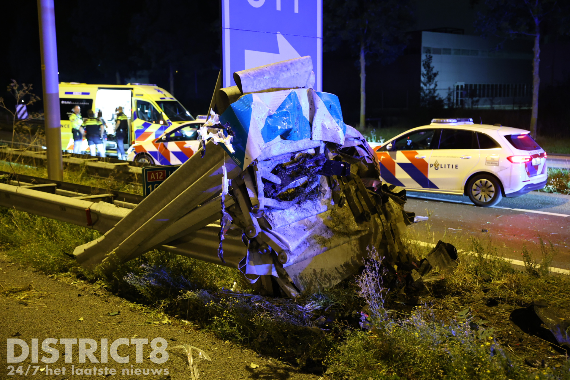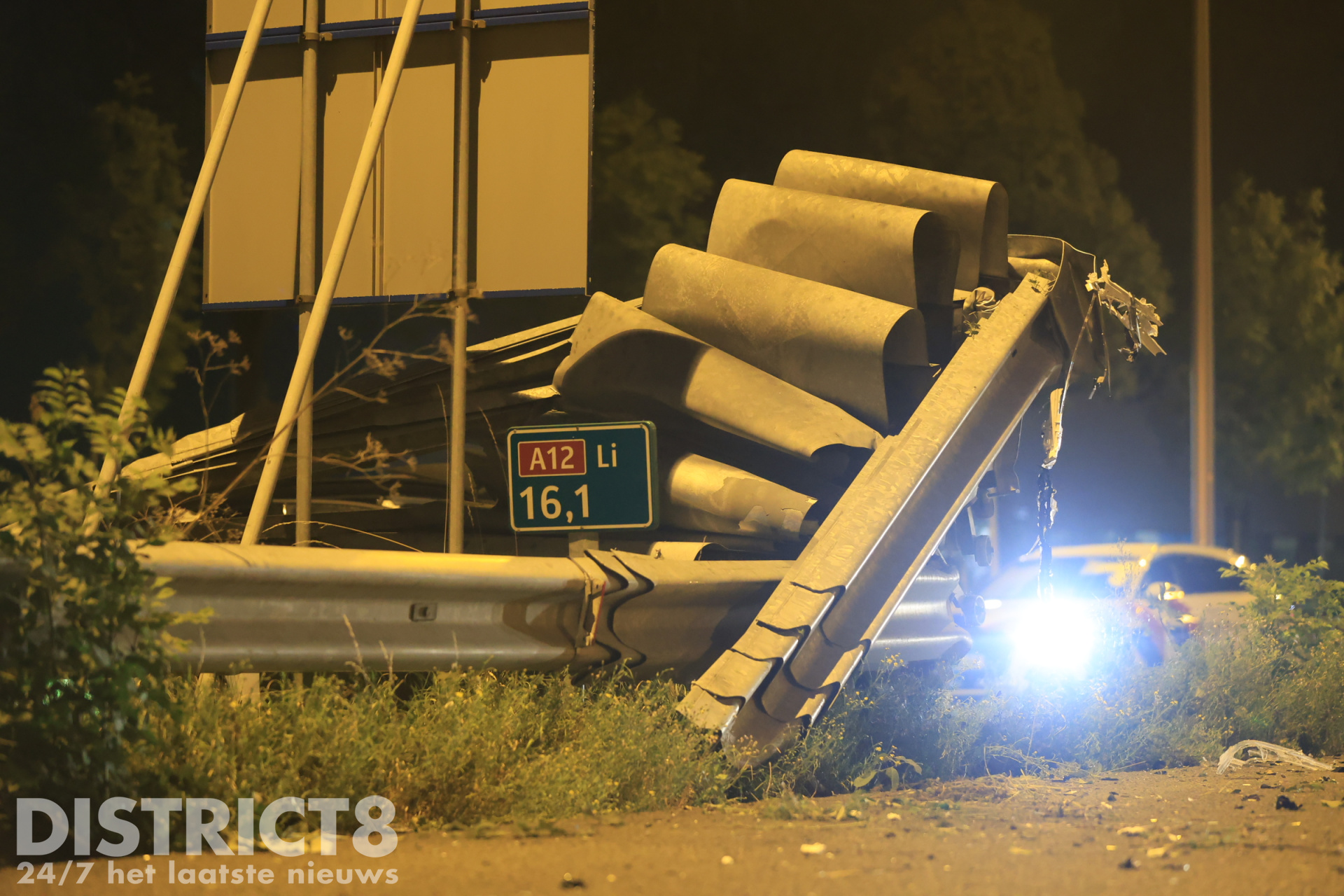 De achtervolging vond plaats op de A12 in de richting van Den Haag. Door nog onbekende oorzaak kwam de bestuurder van op het puntstuk van de afrit terecht en ramde met flinke snelheid de Rimpelbuisobstakelbeveiliger. Een RIMpelbuisOBstakelbeveiliger (RIMOB) is een type bermbeveiliging. Een RIMOB is een keerconstructie om de gevolgen van frontale aanrijdingen op obstakels zoals portalen of brugpijlers te reduceren. Een RIMOB wordt geïnstalleerd op plekken waar geen geleiderail is.