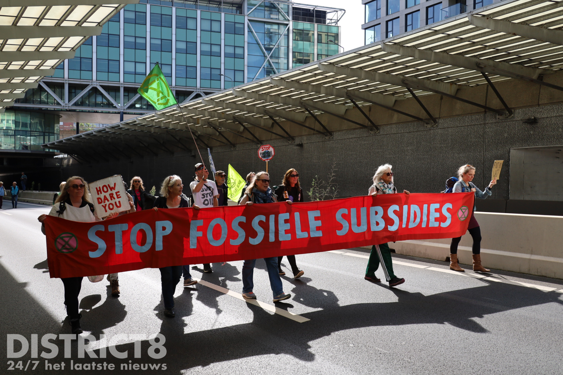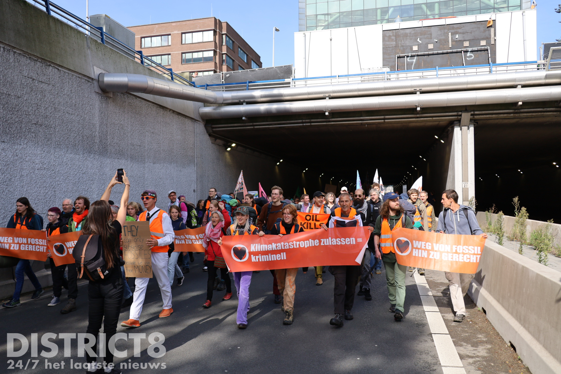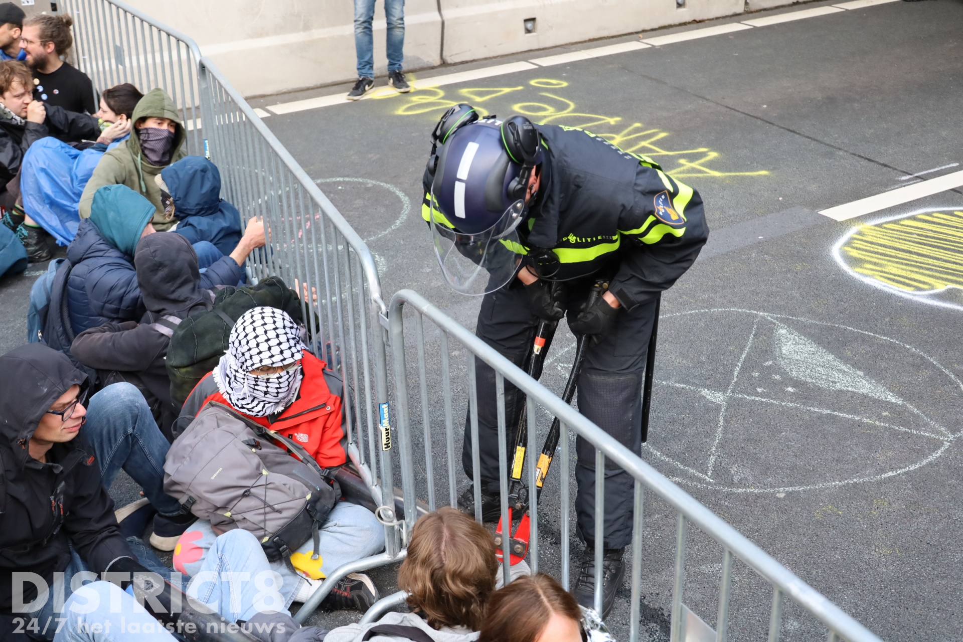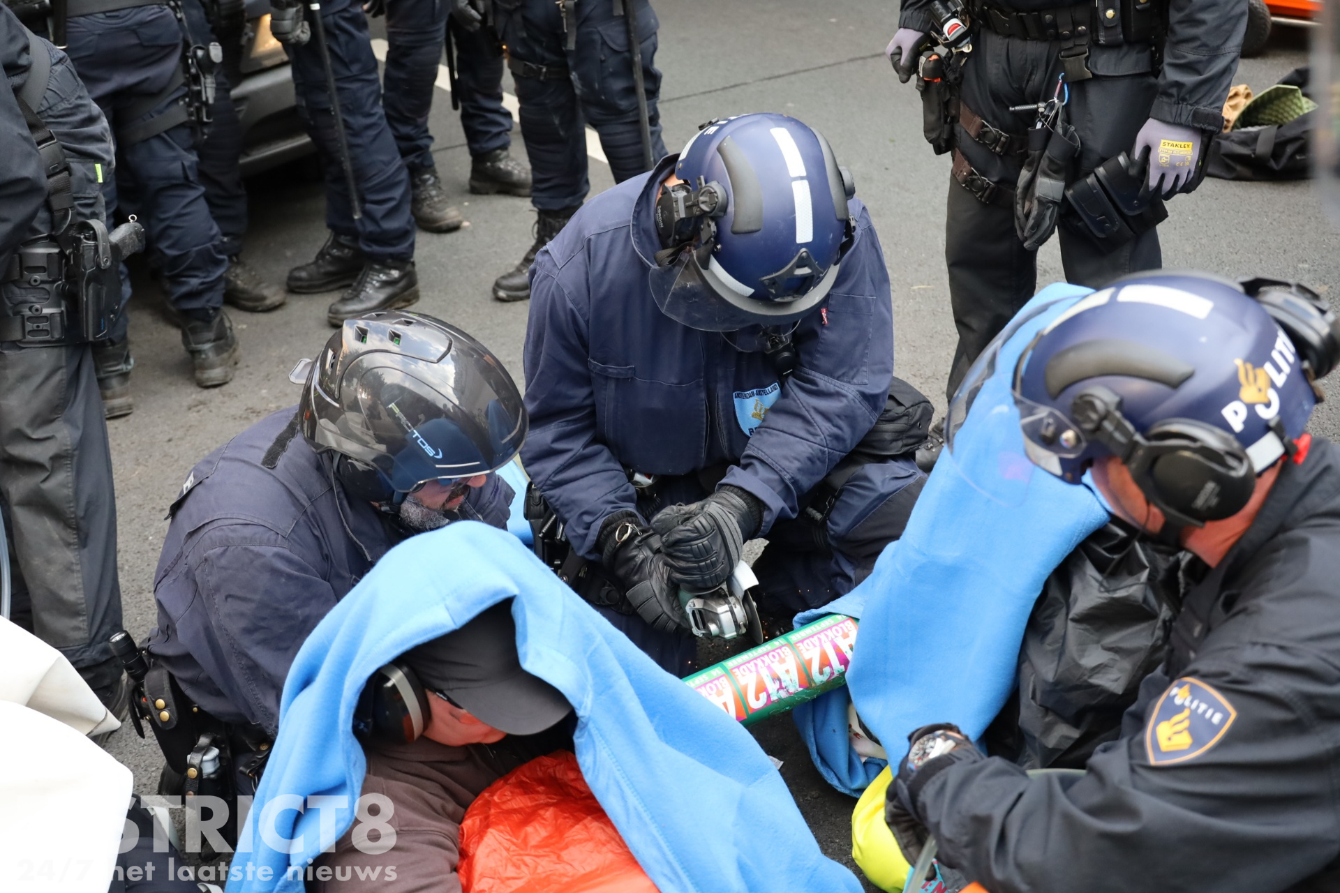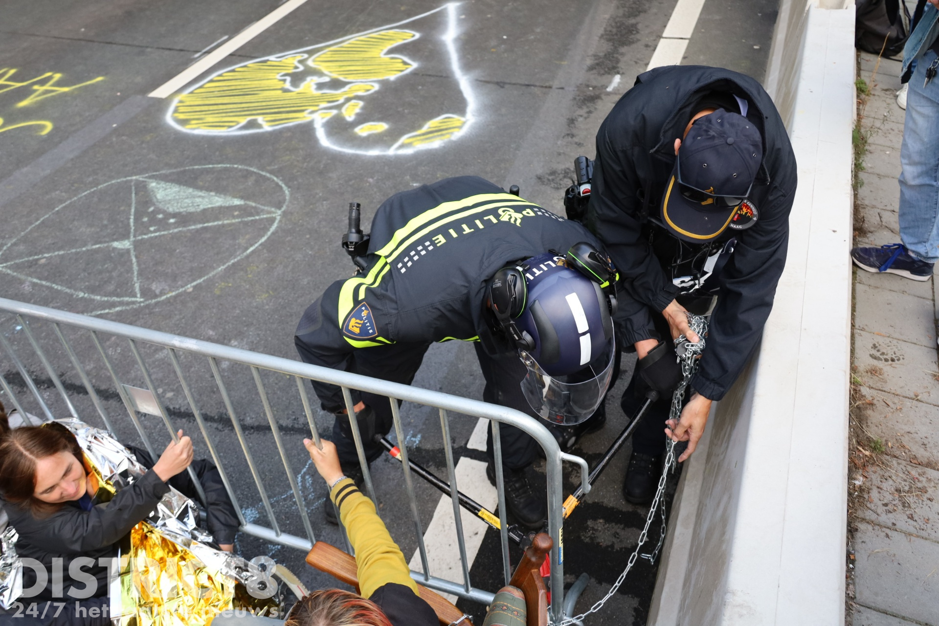 Met waterkanonnen en cirkelzagen deden agenten er vanmiddag alles aan om vastgeketende actievoerders die de A12 blokkeerden daar weg te krijgen. Vanaf het middaguur bezetten demonstranten een deel van de snelweg. Ze probeerden met hun actie een einde te maken aan de jaarlijkse miljardensubsidies voor fossiele brandstoffen.