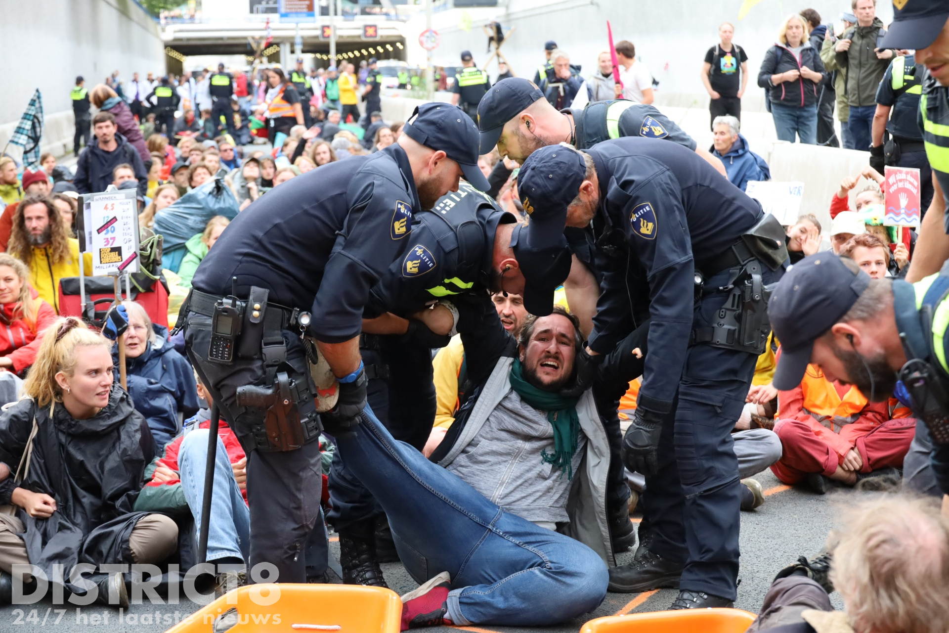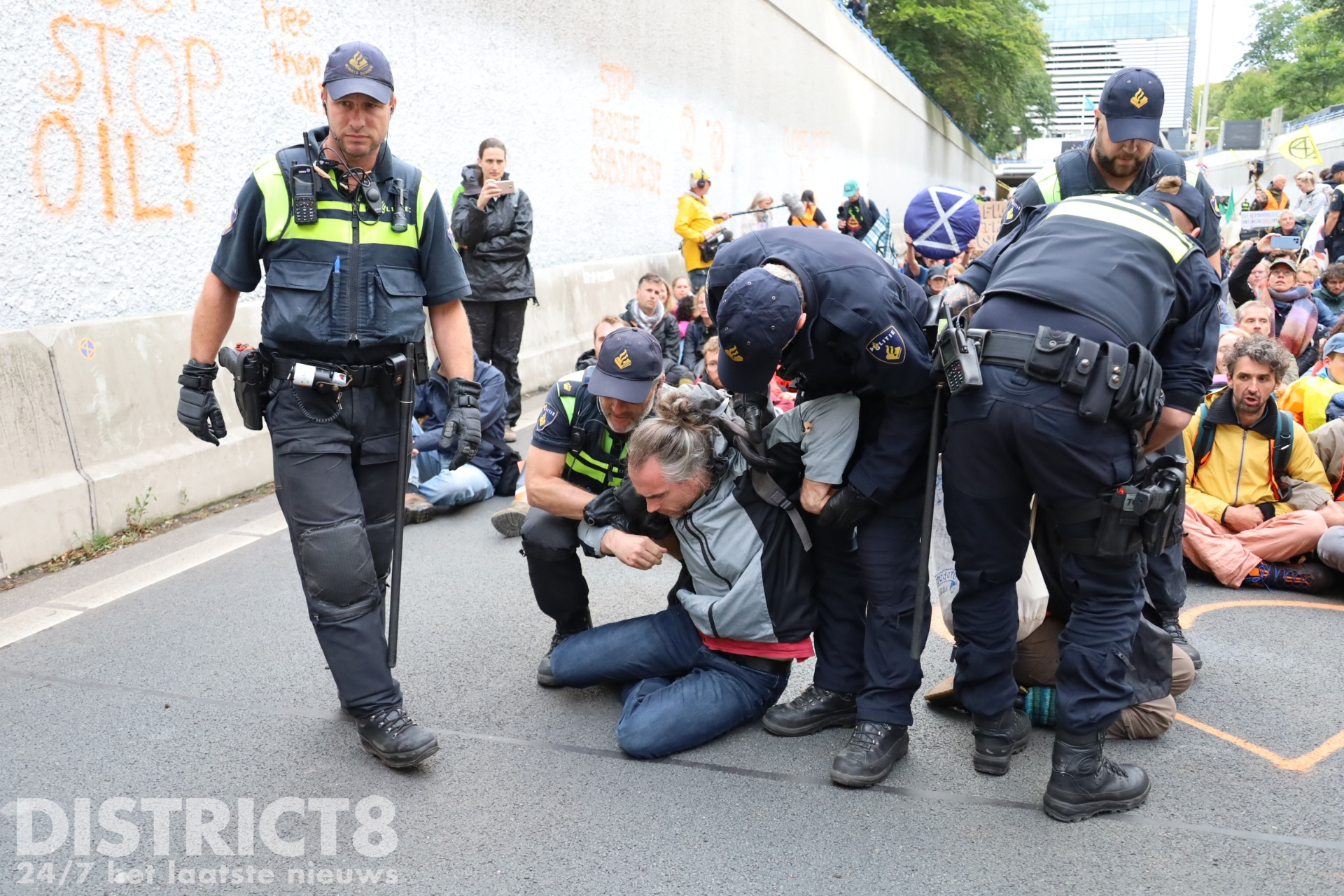 Politie arresteert honderden klimaatactivisten na blokkade Extinction Rebellion A12 Den Haag