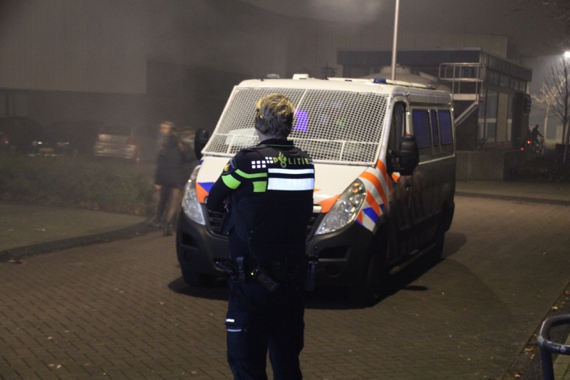 Agenten die de jongeren weg leidden van het pand werden bestookt met vuurwerk. Zover bekend zijn geen minderjarigen hiervoor aangehouden.