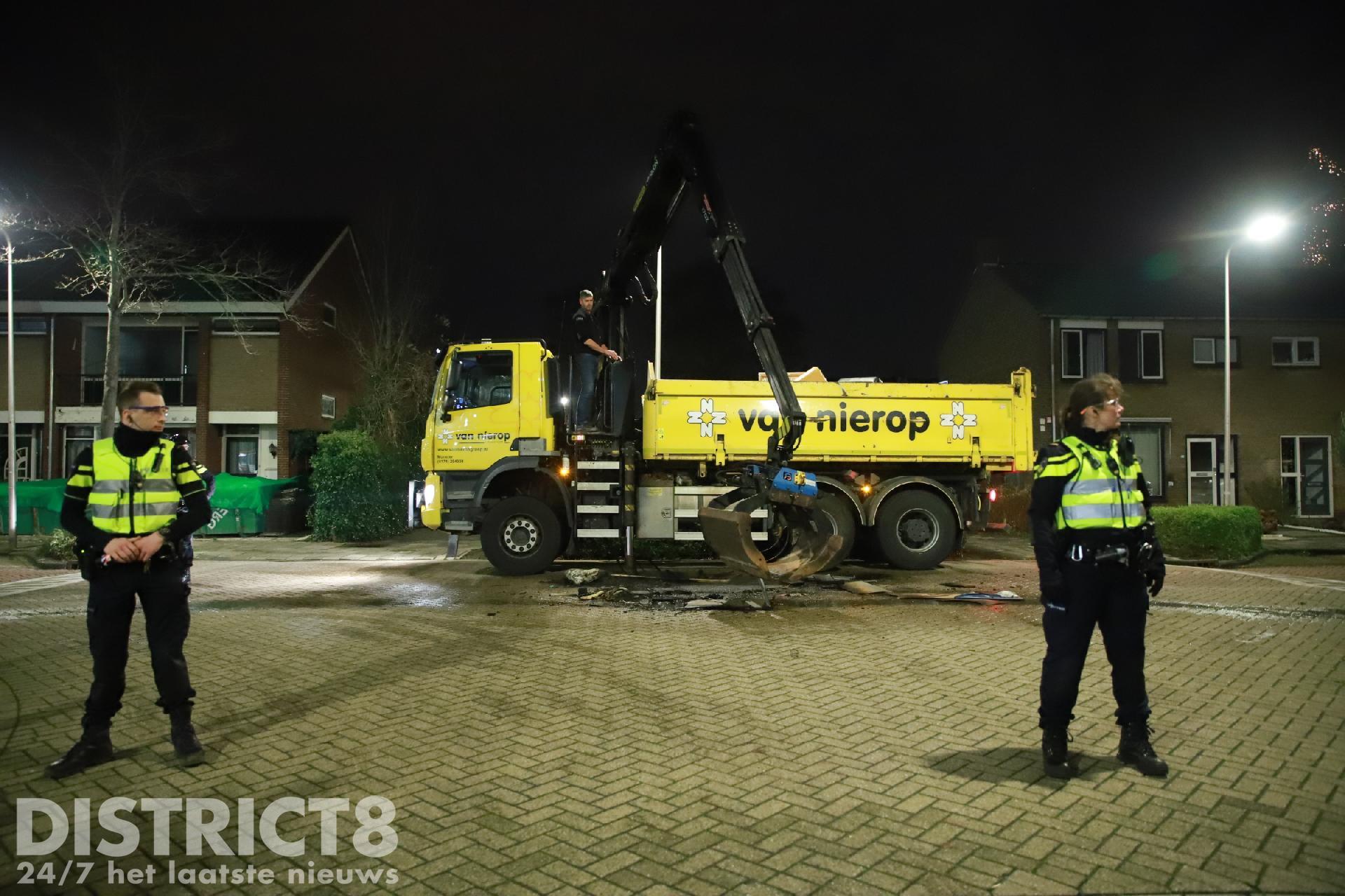 De politie heeft hierbij een aanhouding verricht. Na afscherming door de politie kon de brandweer alsnog de buitenbrand blussen waarna een knijpwagen het afval gelijk weggehaald heeft.