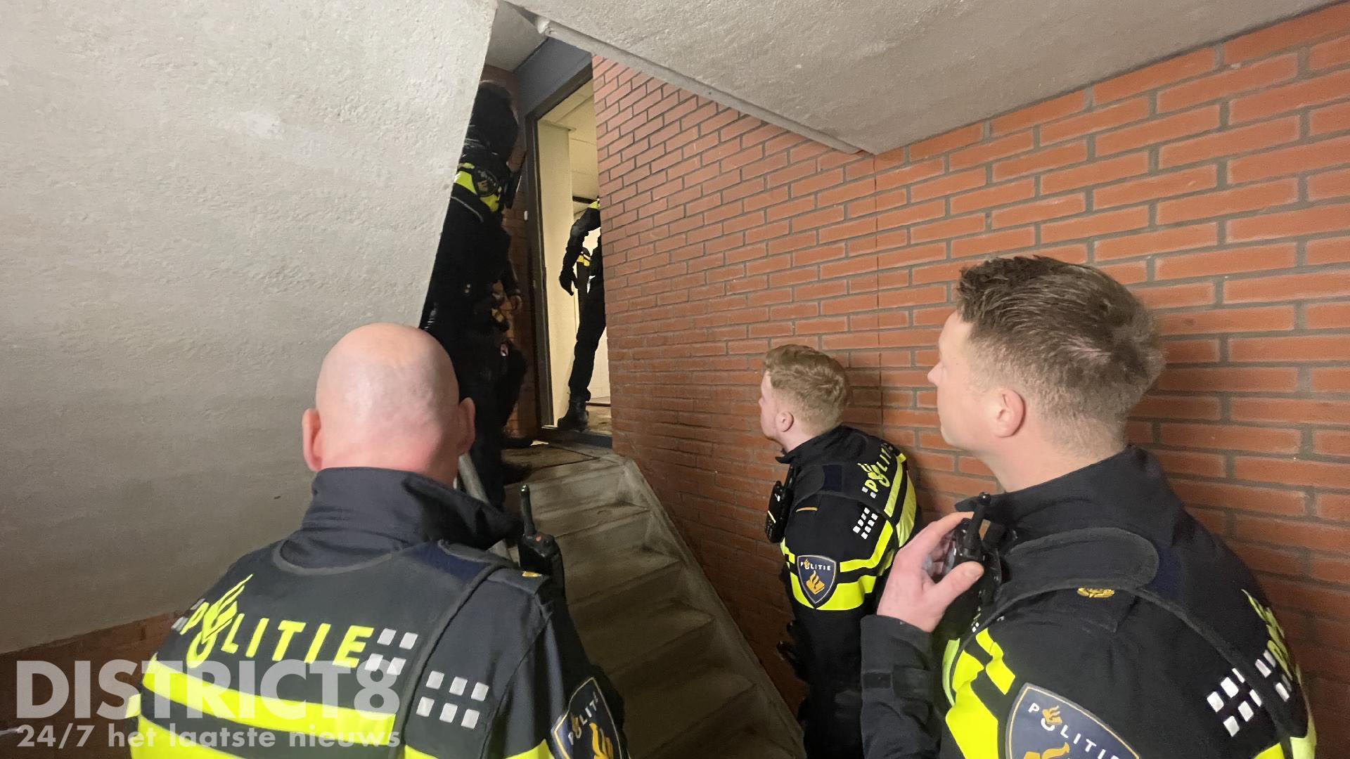 De politie is, met hulp van de hondengeleiders en de stormram, de woning binnengetreden en hebben daar een verdachte aangehouden.