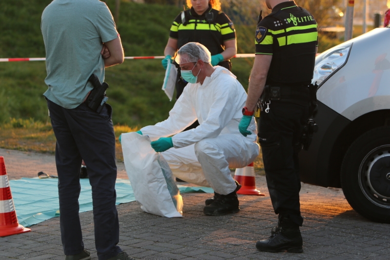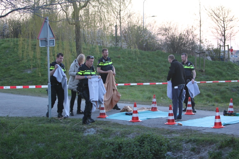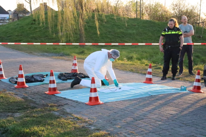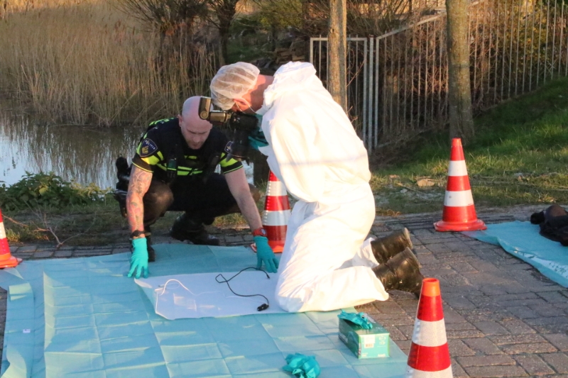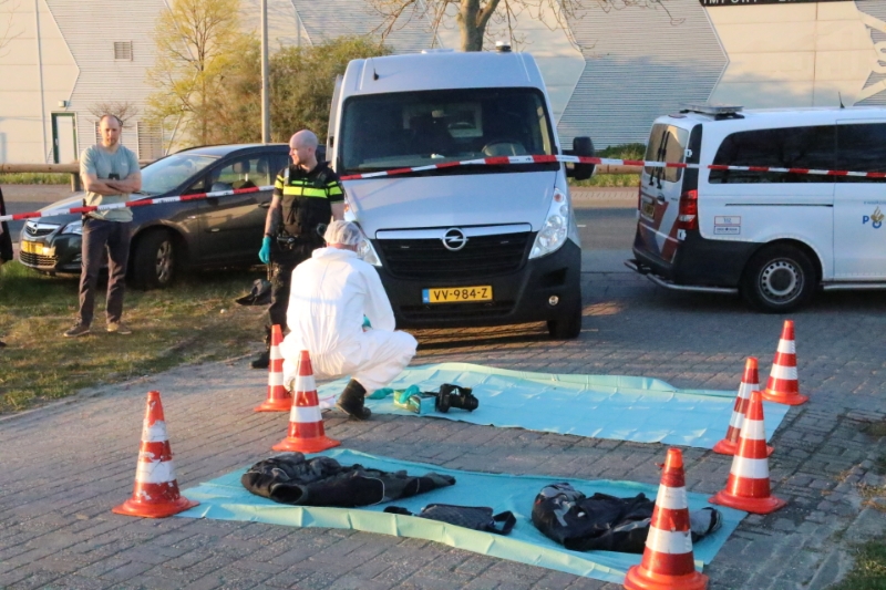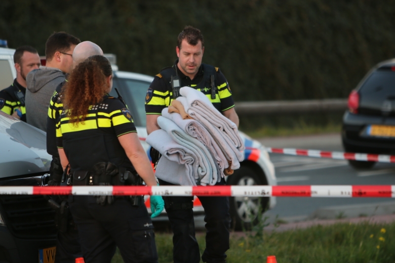 Poeldijk – Aan de Arckelweg in Poeldijk is de Forensische Opsporing van de politie bezig met een onderzoek. Volgens getuigen zijn er uit een naastgelegen slootje twee motorjassen en een tas gehaald. De kledingstukken waren afkomstig van de verdachte van de schietpartij eerder de dag aan het Zonneoord in Den Haag.
