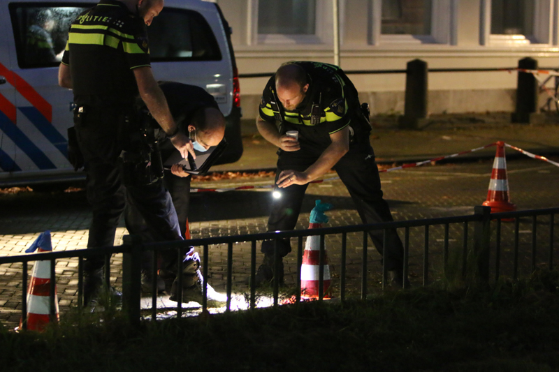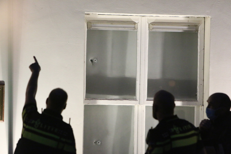 De politie doet ter plaatse onderzoek naar de beschieting.
