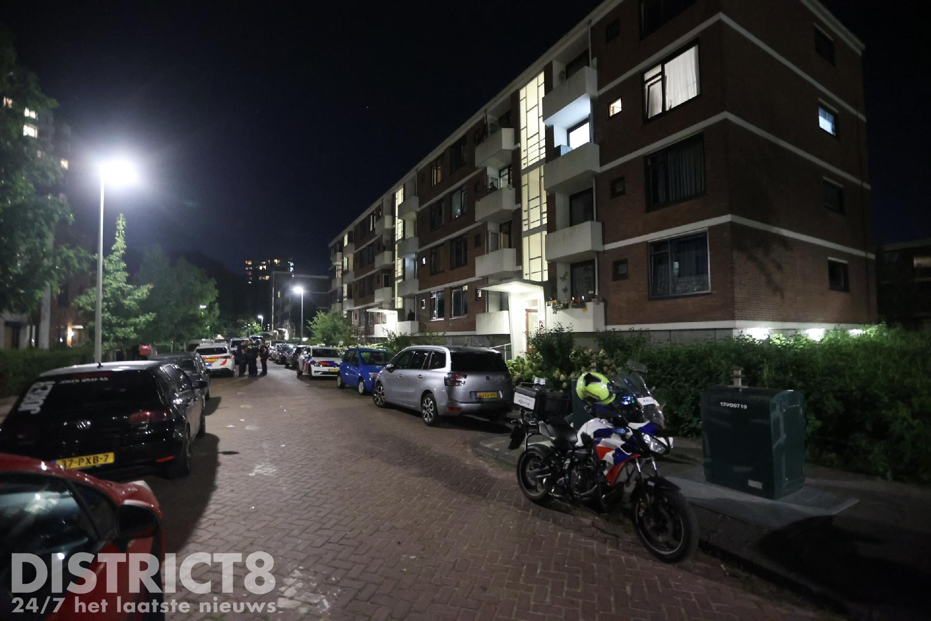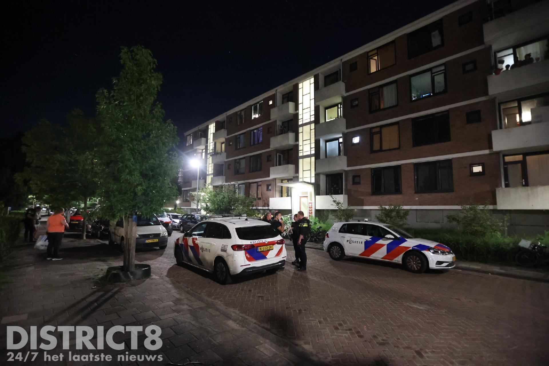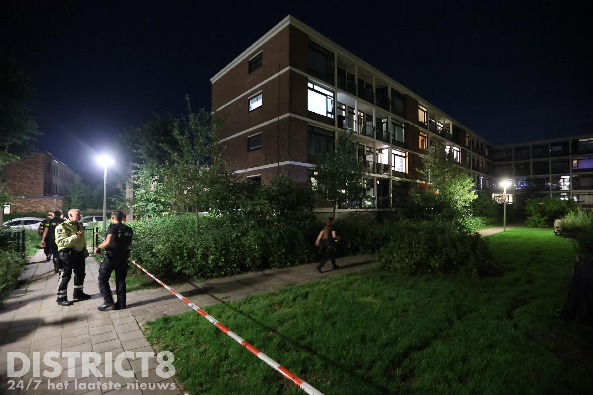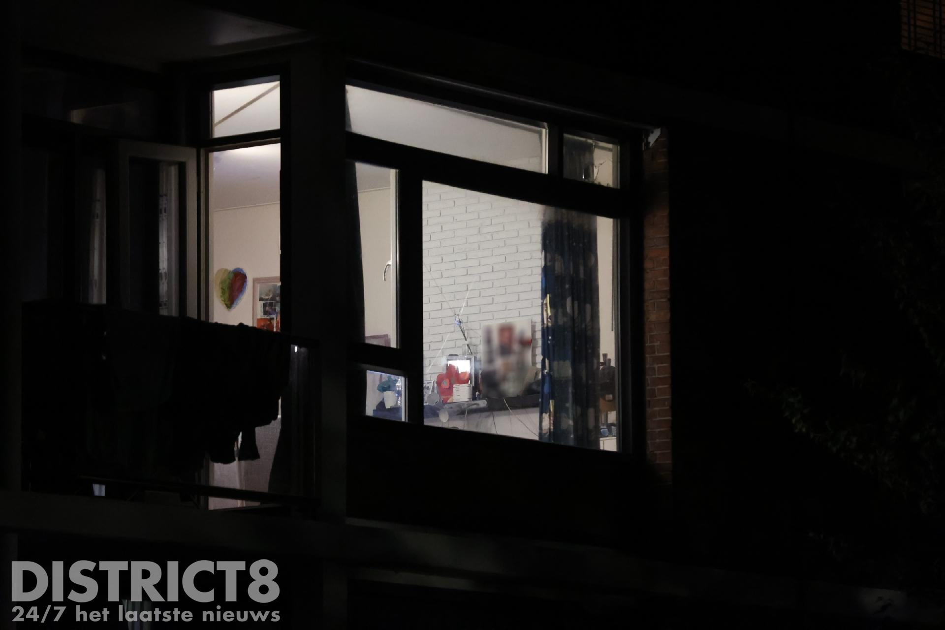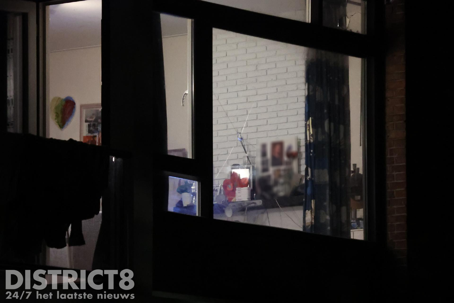 Bij een woning op de tweede etage van een portiek werd een kogelinslag waargenomen.