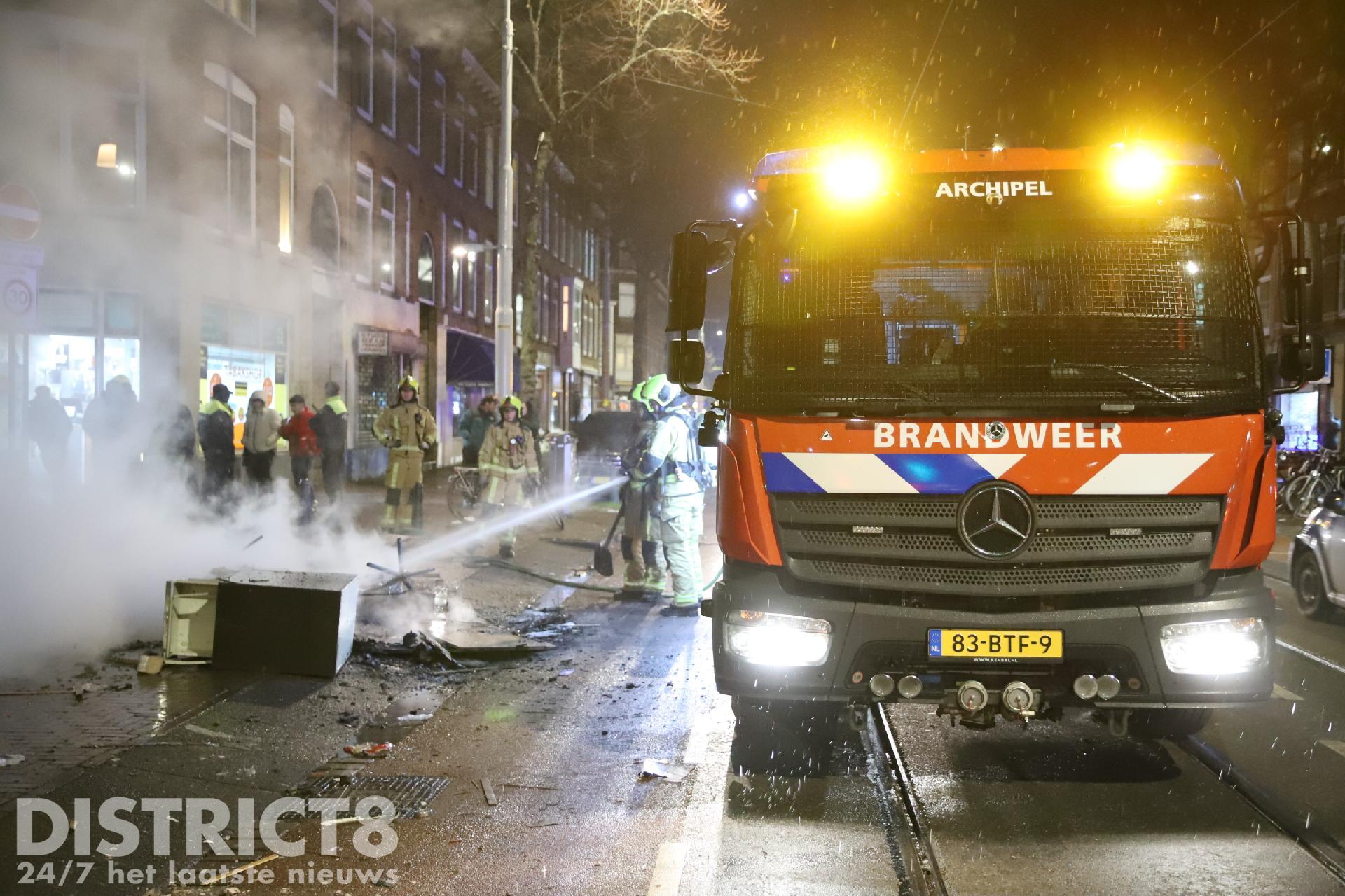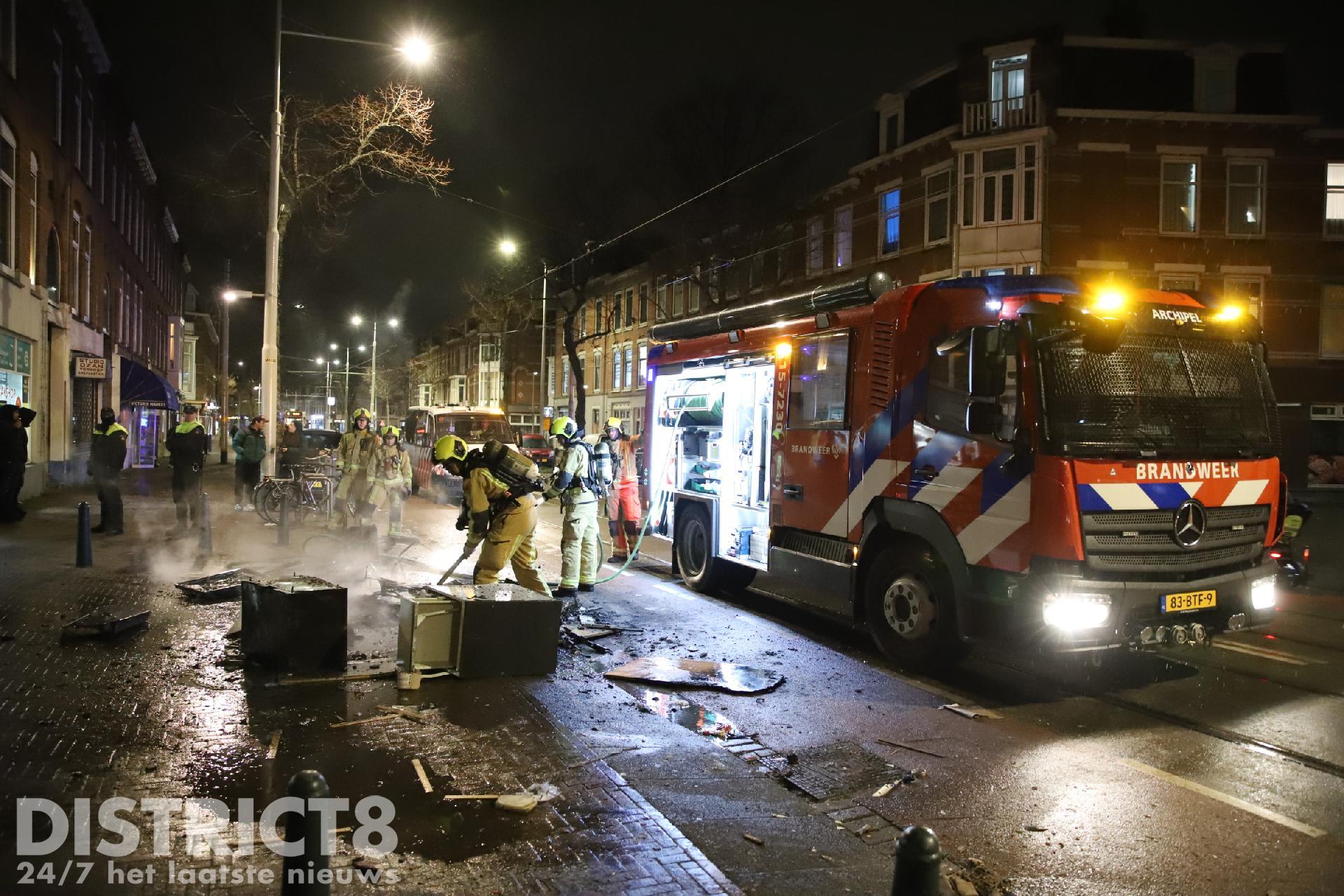 De politie zorgde ervoor dat de omstanders en jeugdigen op afstand bleven zodat de brandweer veilig de branden konden blussen.