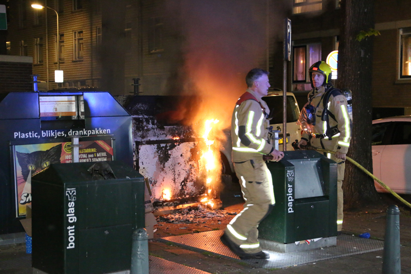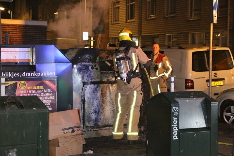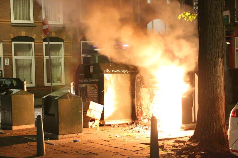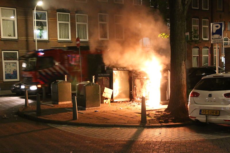 Den Haag – De politie was deze nacht flink aanwezig nadat een container in brand was gestoken op het Paul Krugerplein in Den Haag.