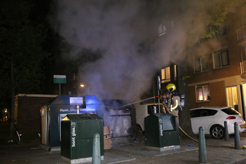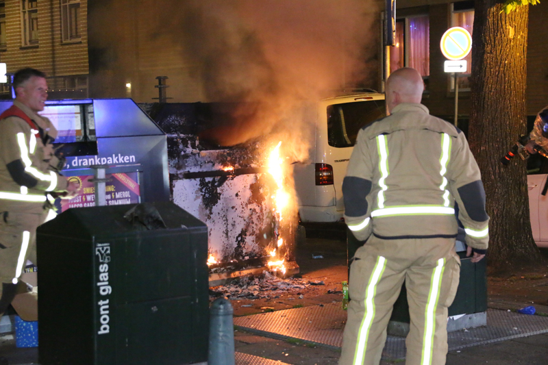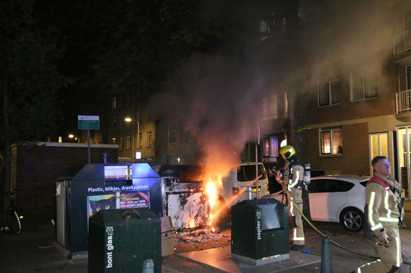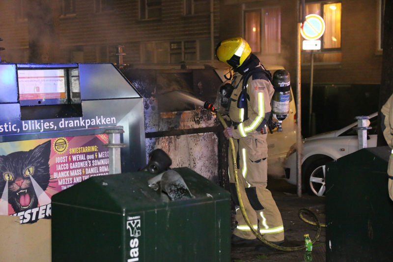 Voor zover bekend is er niemand aangehouden. De brandweer heeft het vuur geblust.