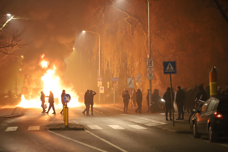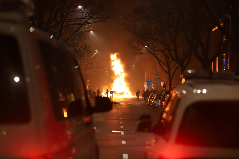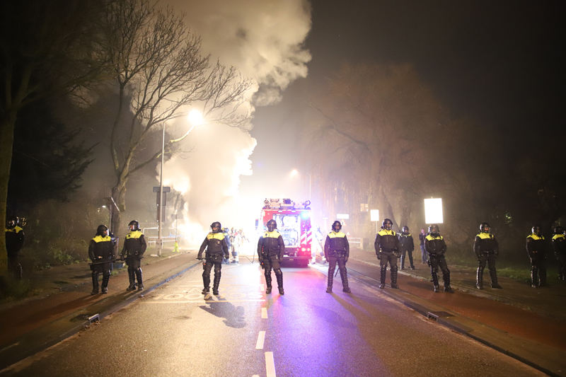 Rondom de brand had zich een grote groep jongeren verzameld die door de Mobiele Eenheid (ME) weggestuurd moest worden. De ME is hierbij op linie gaan staan met schilden. Na de inzet van de ME keerde de rust terug en dropen de jongeren af.