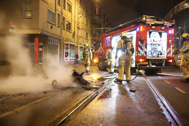 Een rolcontainer is op de Hobbemastraat in brand gestoken op straat. Een buurtbewoner heeft met een brandblusser gepoogd om de brand te doven, dit had echter geen succes. De brandweer is ter plaatse gekomen en heeft de brand onder begeleiding van de politie geblust.