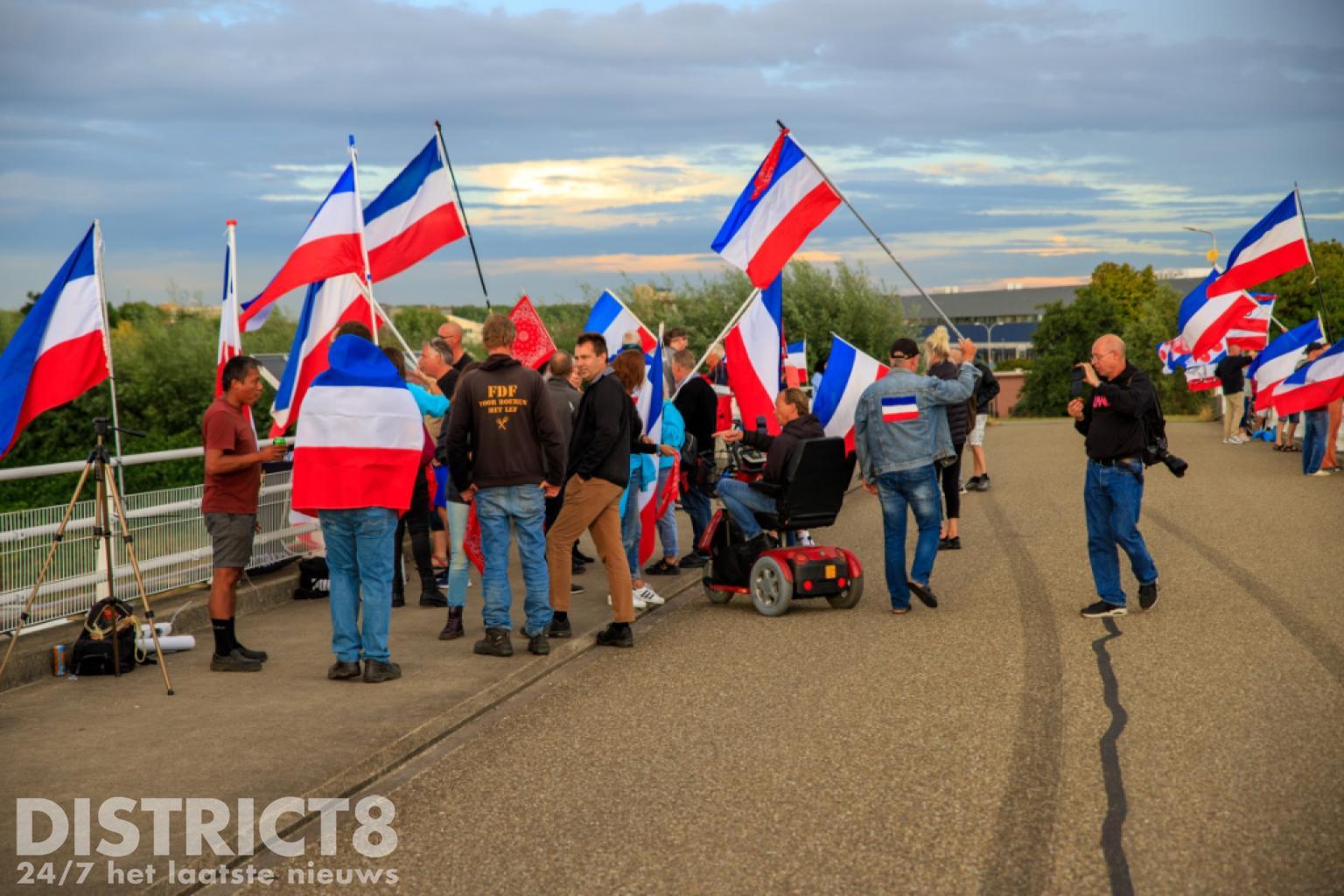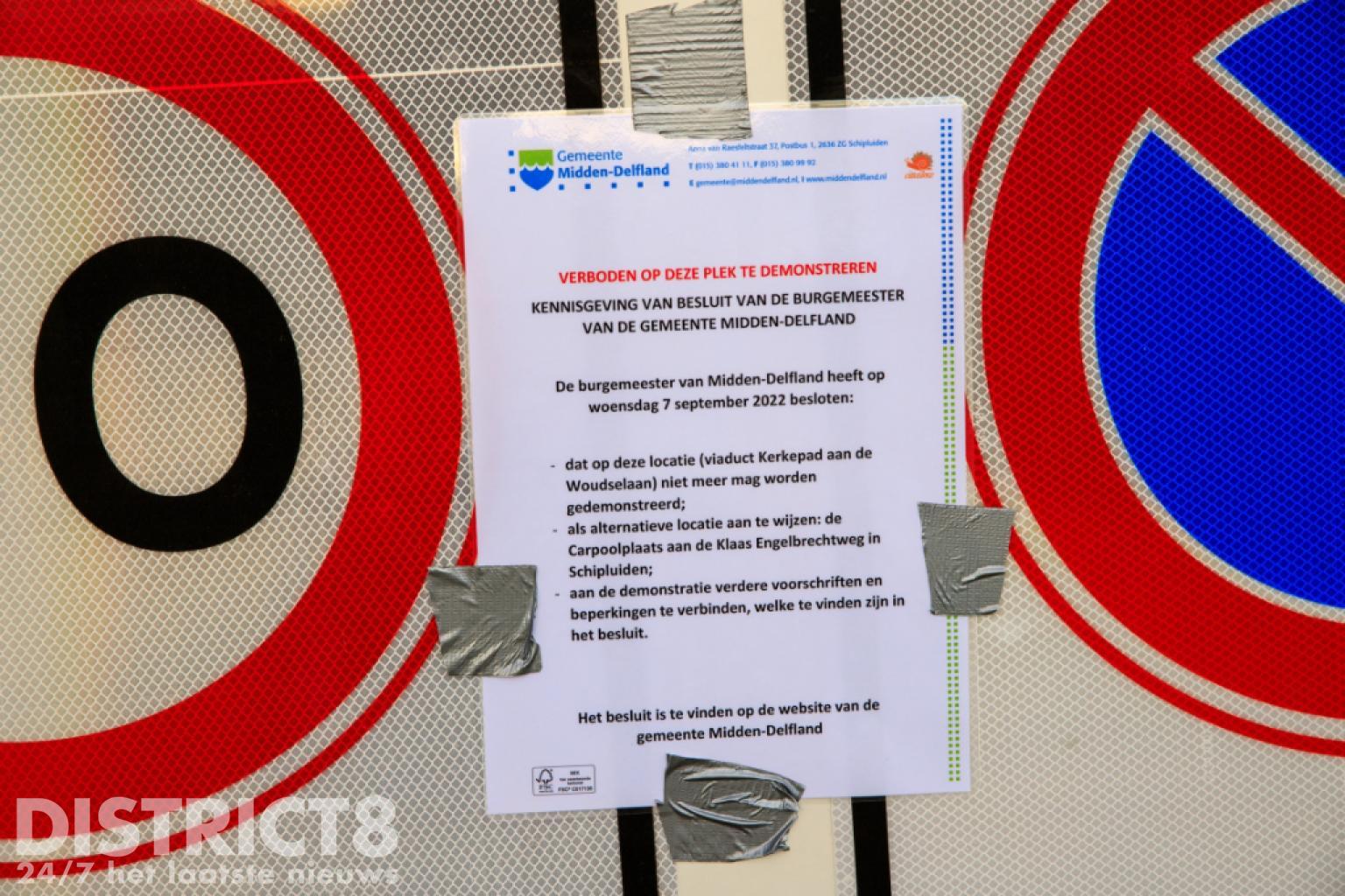Er werden gisteren ook gelijk brieven uitgedeeld aan de demonstranten, dat op last van de Burgemeester er geen vlaggenprotest meer mag plaatsvinden op het viaduct. Nog geen 24 uur later waren er toch weer ruim 50 demonstranten, met trekkers en omgekeerde vlaggen, op het viaduct over de A4 aanwezig.