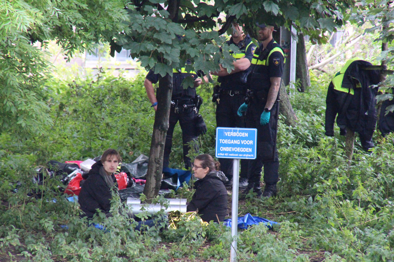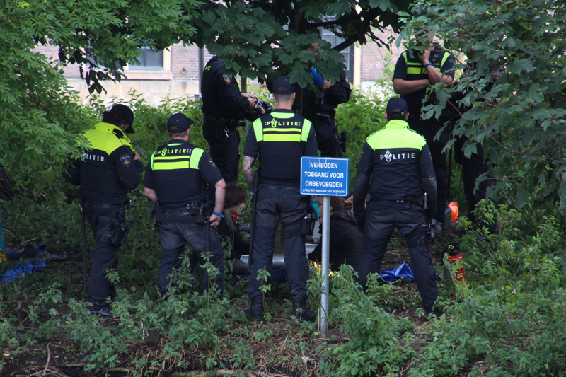 De Technische Eenheid van de politie kwam ter plaatse om de actievoerders, die zichzelf hadden vastgeketend los te maken.