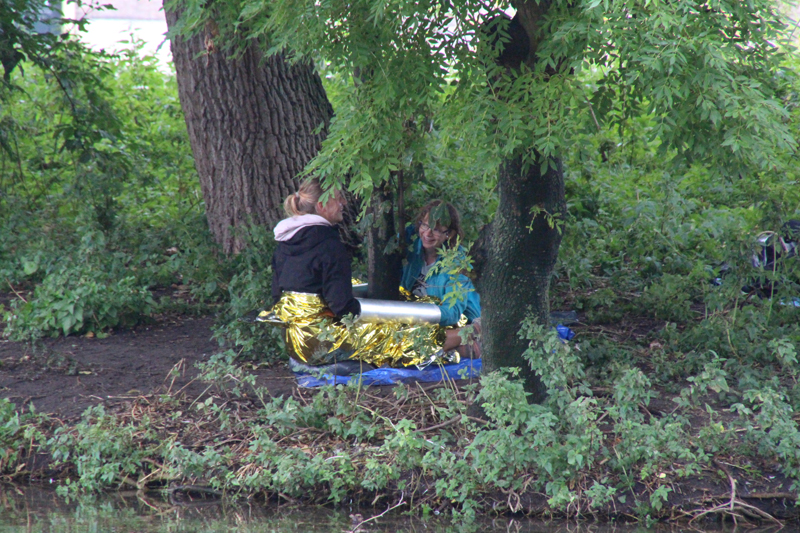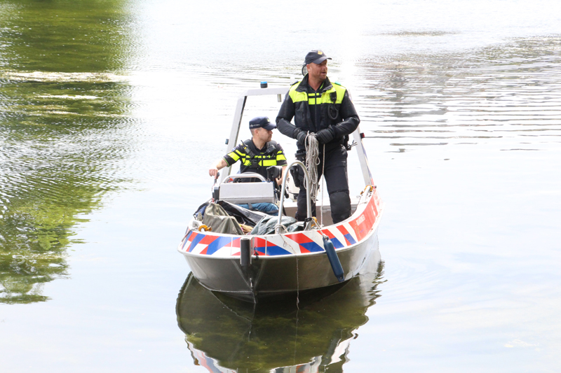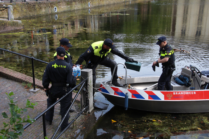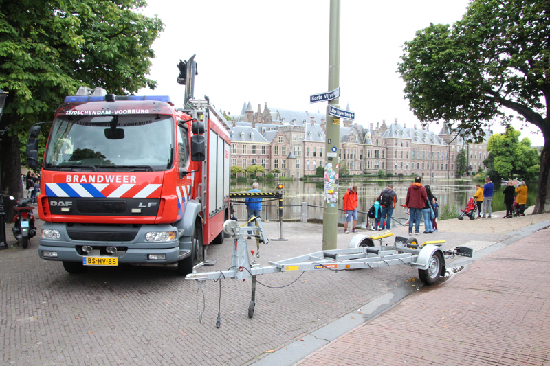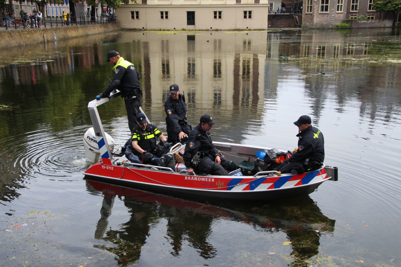 De boot van de brandweer werd ingezet om op het eiland te komen. De leden van het Parate Peloton gingen hiermee naar het eiland toe om de spandoeken te verwijderen.