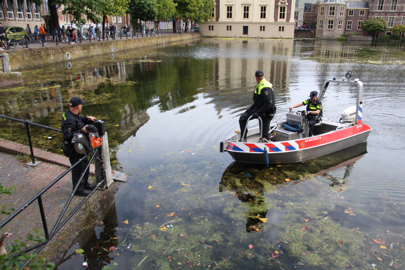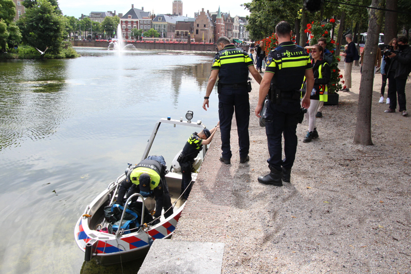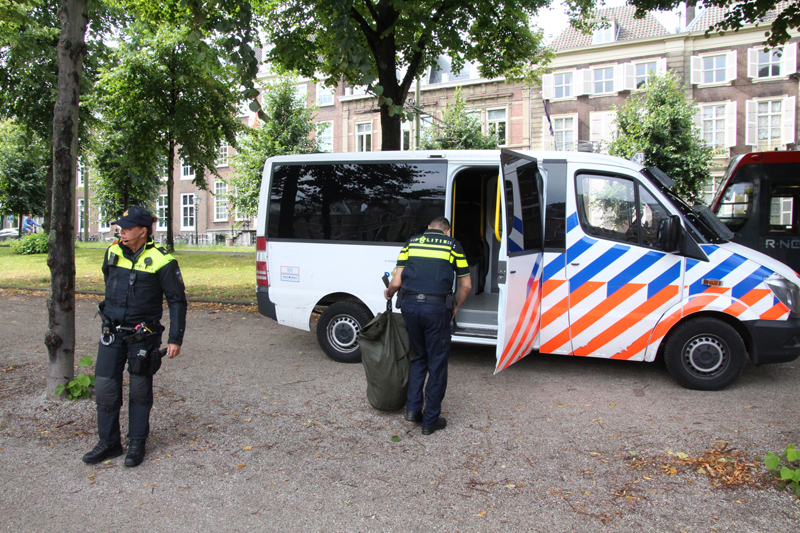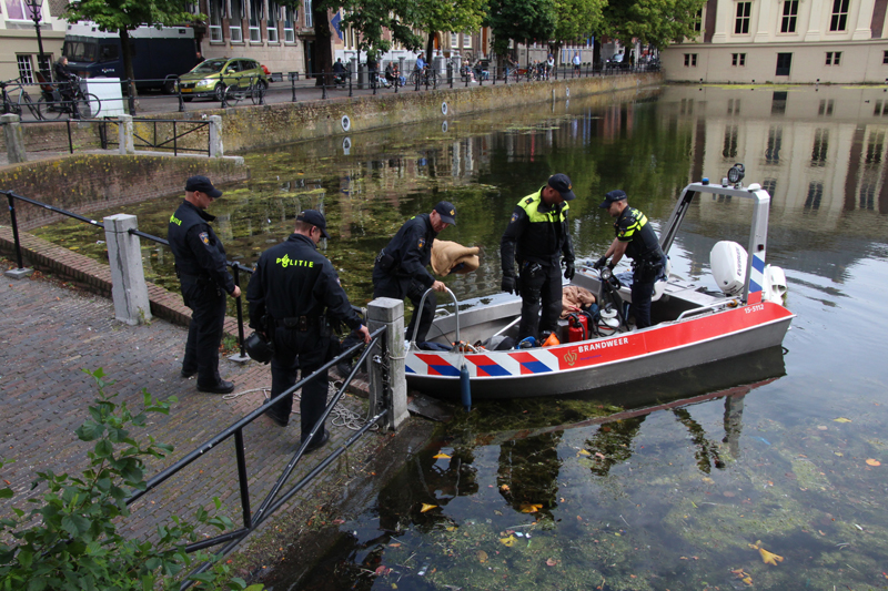 Den Haag – De politie heeft maandagmiddag enkele actievoerders van Extinction Rebellion van het eiland in de Hofvijver gehaald. Deze hadden zich op het eiland vastgeketend.