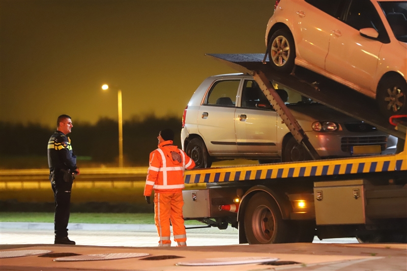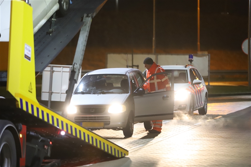Een berger kwam ter plaatse om de auto af te slepen en te bergen. De politie onderzoekt de zaak.