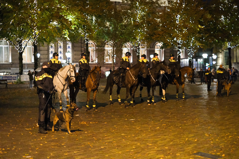 De politie heeft de demonstranten medegedeeld dat iedereen om half 8 vertrokken dient te zijn, echter heeft een groep van 50 demonstranten hierop besloten te gaan zitten op het Plein en is geenszins van plan vrijwillig te vertrekken.