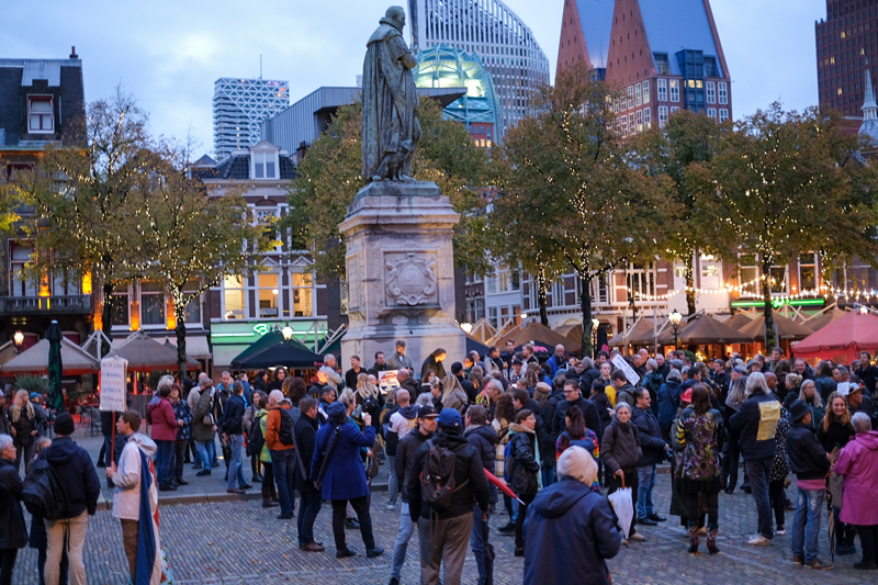 Den Haag – Nadat dinsdagavond en woensdag reeds de gehele dag gedemonstreerd is tegen de spoedwet op het Plein in Den Haag, wordt ook donderdag weer gedemonstreerd. Donderdagavond om 19.00 uur staan nog enkele honderden demonstranten op het Plein.
