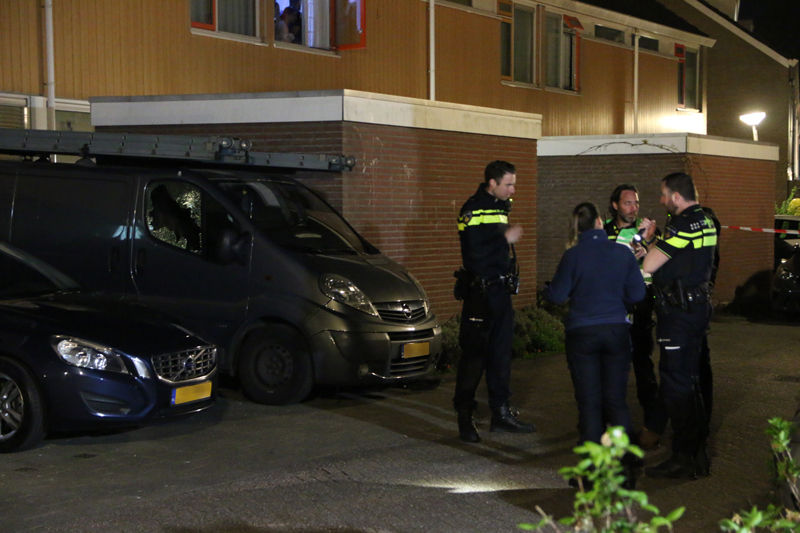 Bewoners hoorden twee harde knallen, toen buurtbewoners buiten gingen kijken zagen deze dat de autoruit van een geparkeerd busje kapot was. Op straat werden al snel twee hulzen aangetroffen.