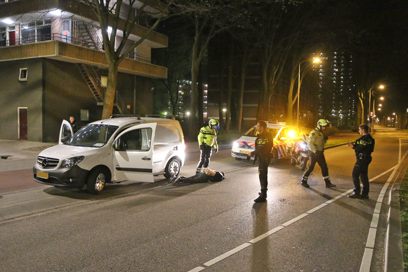 Het busje van de man is later door een berger van de politie meegenomen voor verder onderzoek.
