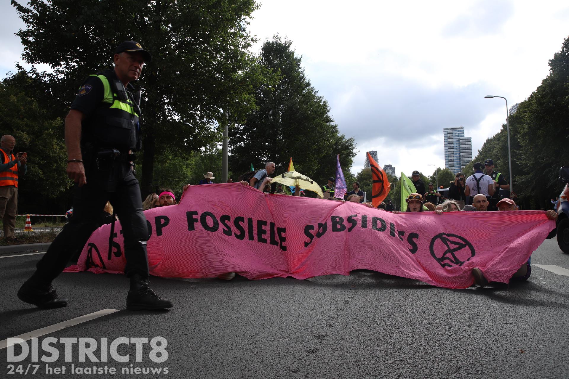 Den Haag – De demonstranten van Extinction Rebellion hebben de A12 en het kruispunt van de Zuid Hollandlaan en de Bezuidenhoutseweg geblokkeerd. Dit deden zij voor de vijfde dag op rij.