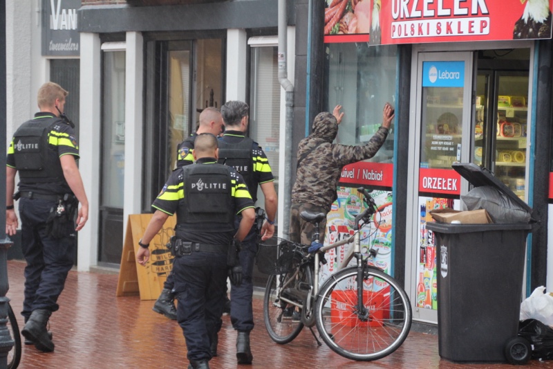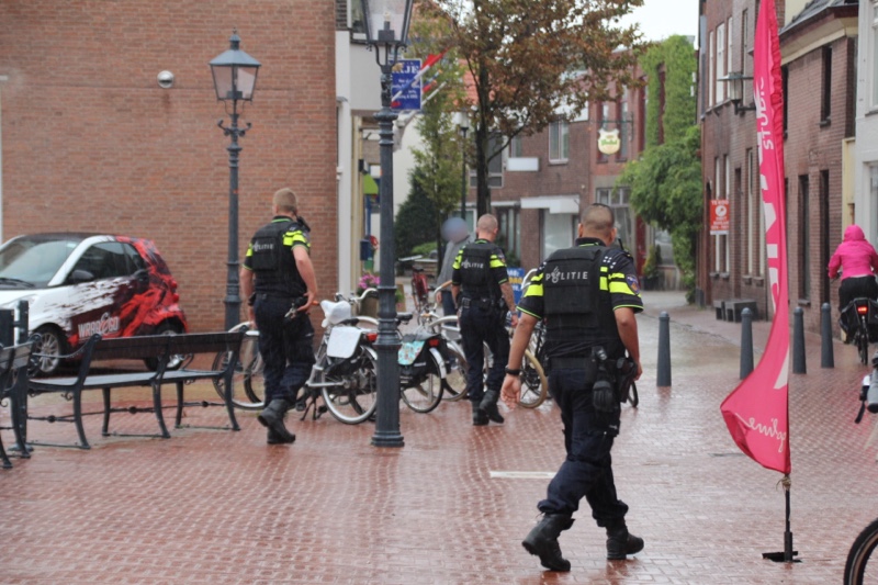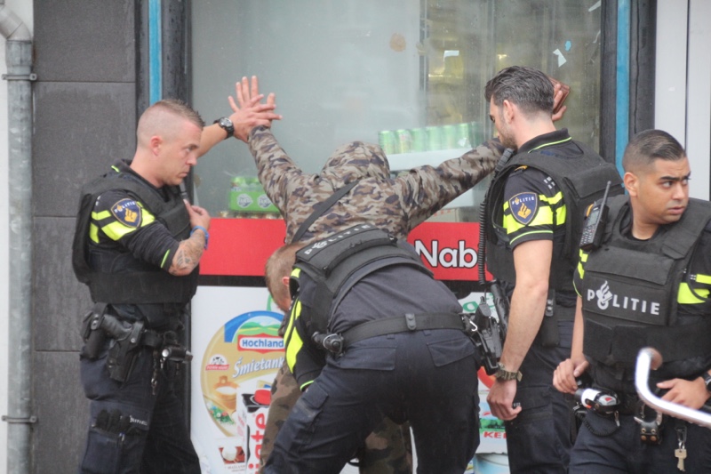 De politie is direct in grote getallen ter plaatse gegaan en droeg kogelwerende vesten. Twee mannen die vanaf de Wittebrug richting het centrum liepen zijn op de Voorstraat gecontroleerd.