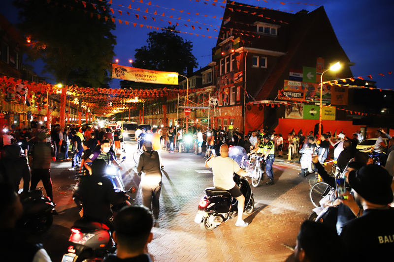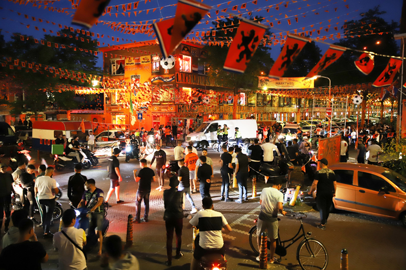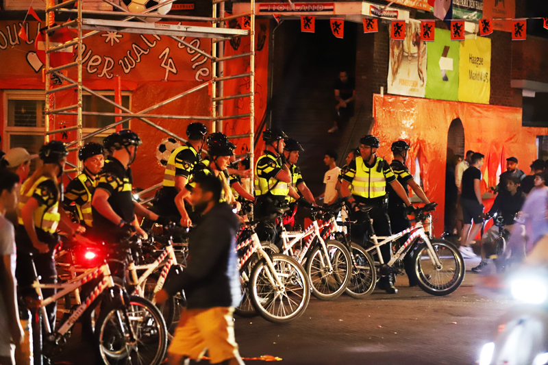 Na de door Nederland gewonnen wedstrijd barstte wederom het feest los in de straat, echter sloeg de feeststemming al snel om en moest de politie ingrijpen. Waar er eerst nog vuurwerk af werd gestoken om de overwinning te vieren, werd kort daarna gegooid met het vuurwerk. Tevens werd de politie bekogeld met diverse materialen. Na een kort optreden door de politie waren de onruststokers verdreven en konden de buurtbewoners die gezellig feest wilden vieren het feest weer voortzetten. De politie heeft bij het optreden tenminste een persoon aangehouden. Bij deze aanhouding was het noodzakelijk om pepperspray te gebruiken om de verdachte onder controle te krijgen.
