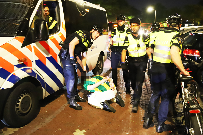 Den Haag – Ook aan het Jonckbloetplein verzamelden mensen zich op straat na de gewonnen wedstrijd van het Nederlands elftal. Ter hoogte van de Jan Wapstraat werd het kort onrustig en werd met zwaar vuurwerk gegooid waardoor een auto beschadigd raakte. De Mobiele Eenheid (ME) heeft hierop een linie gevormd en de AanhoudingsEenheid (AE) heeft één persoon aangehouden.