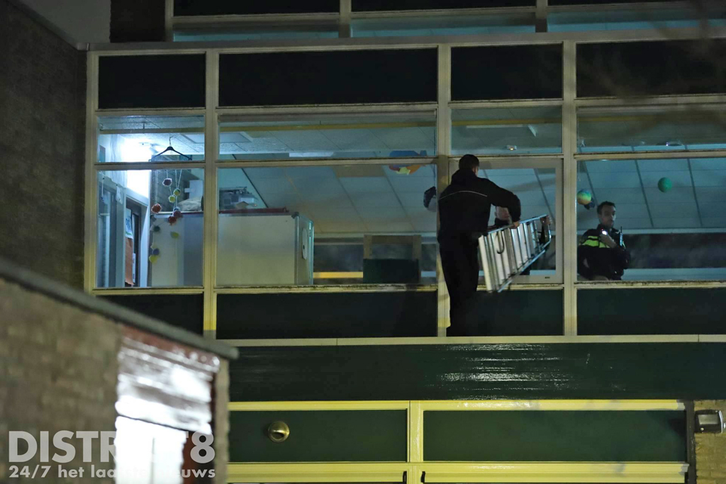 Omstreeks 04:15 kwam bij de politie een melding binnen dat er zich mensen bevonden op het dak van het schoolgebouw gelegen aan de Elzendreef. Toen agenten aankwamen zagen zij een aantal personen wegrennen.