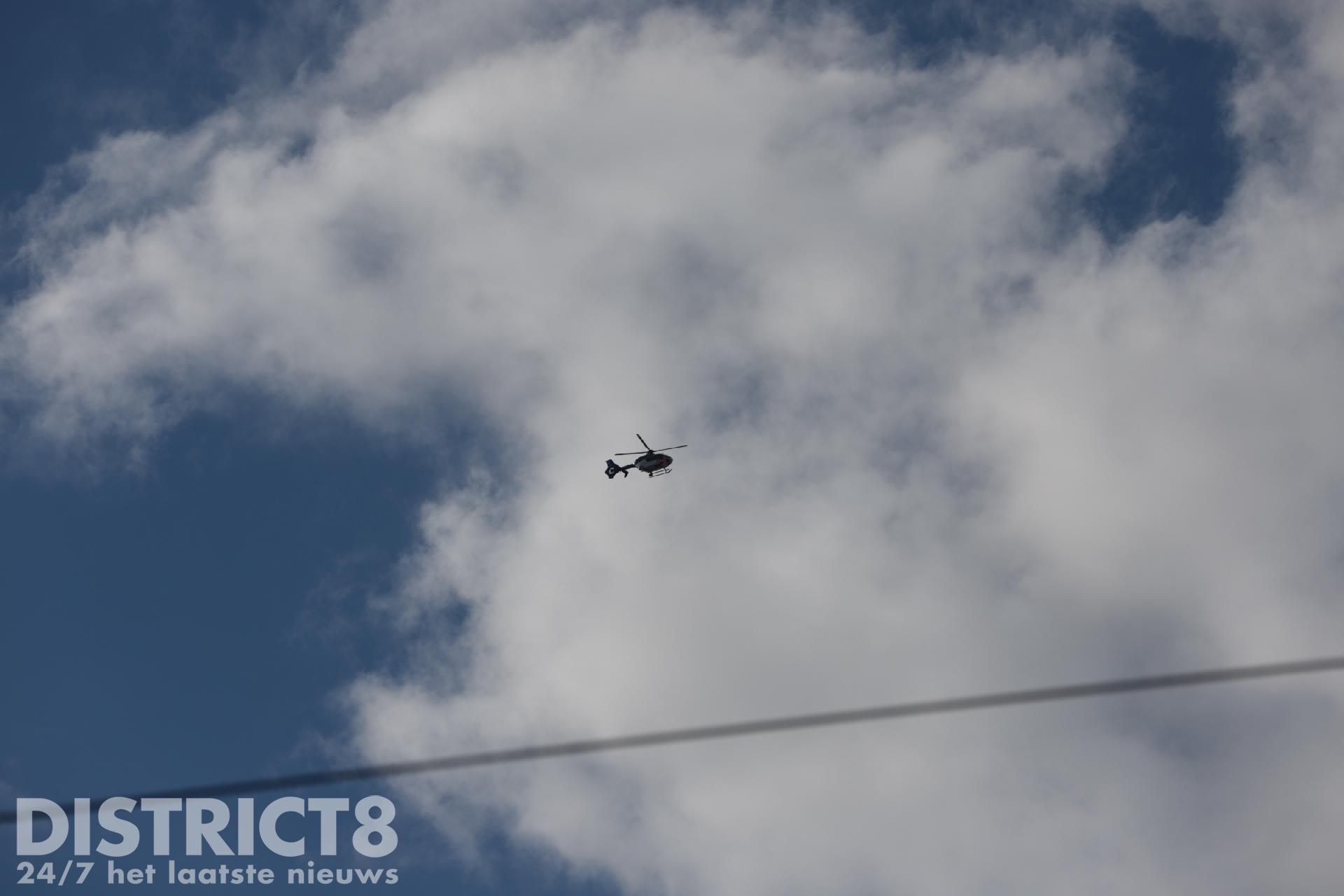 In de omgeving van de Rijswijkseweg is veel politie, waaronder een politiehelikopter, aan het zoeken naar de verdachten.