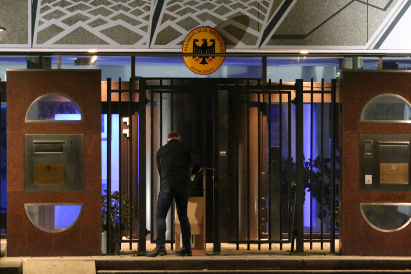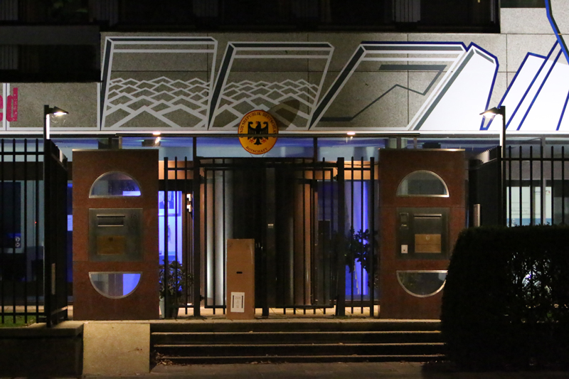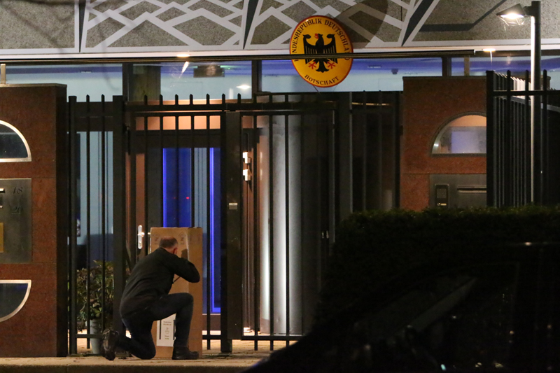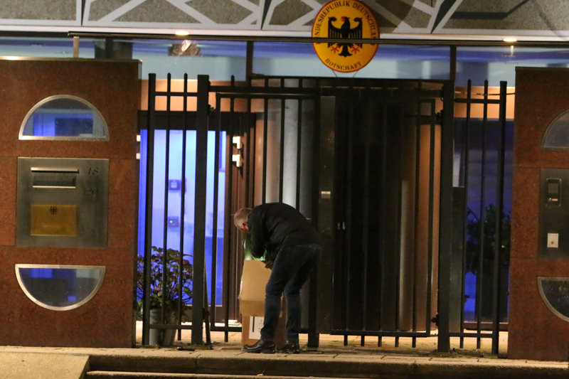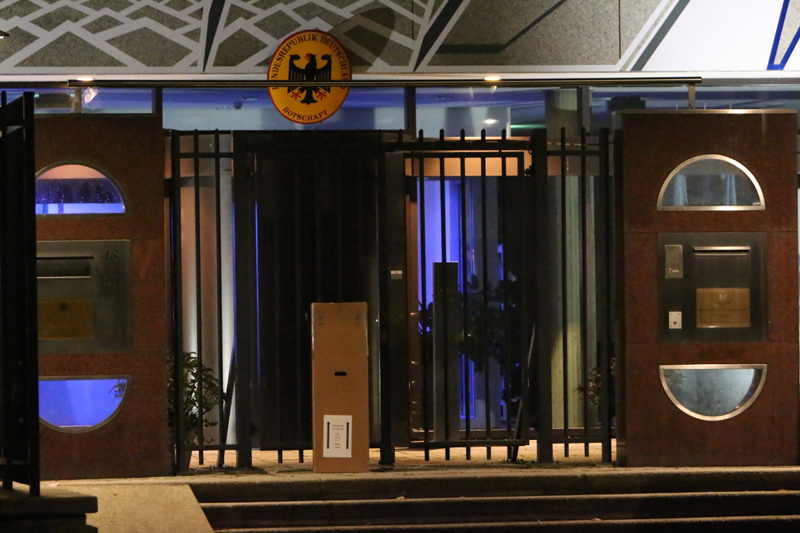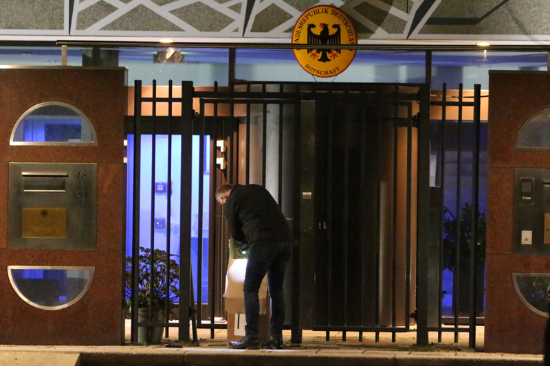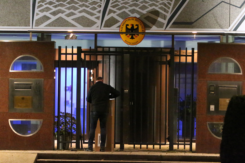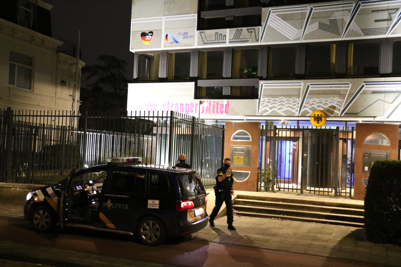 Den Haag – Voor de poort van de Duitse Ambassade aan de Groot Hertoginnelaan in Den Haag werd zaterdag op zondagnacht een verdacht pakketje aangetroffen.