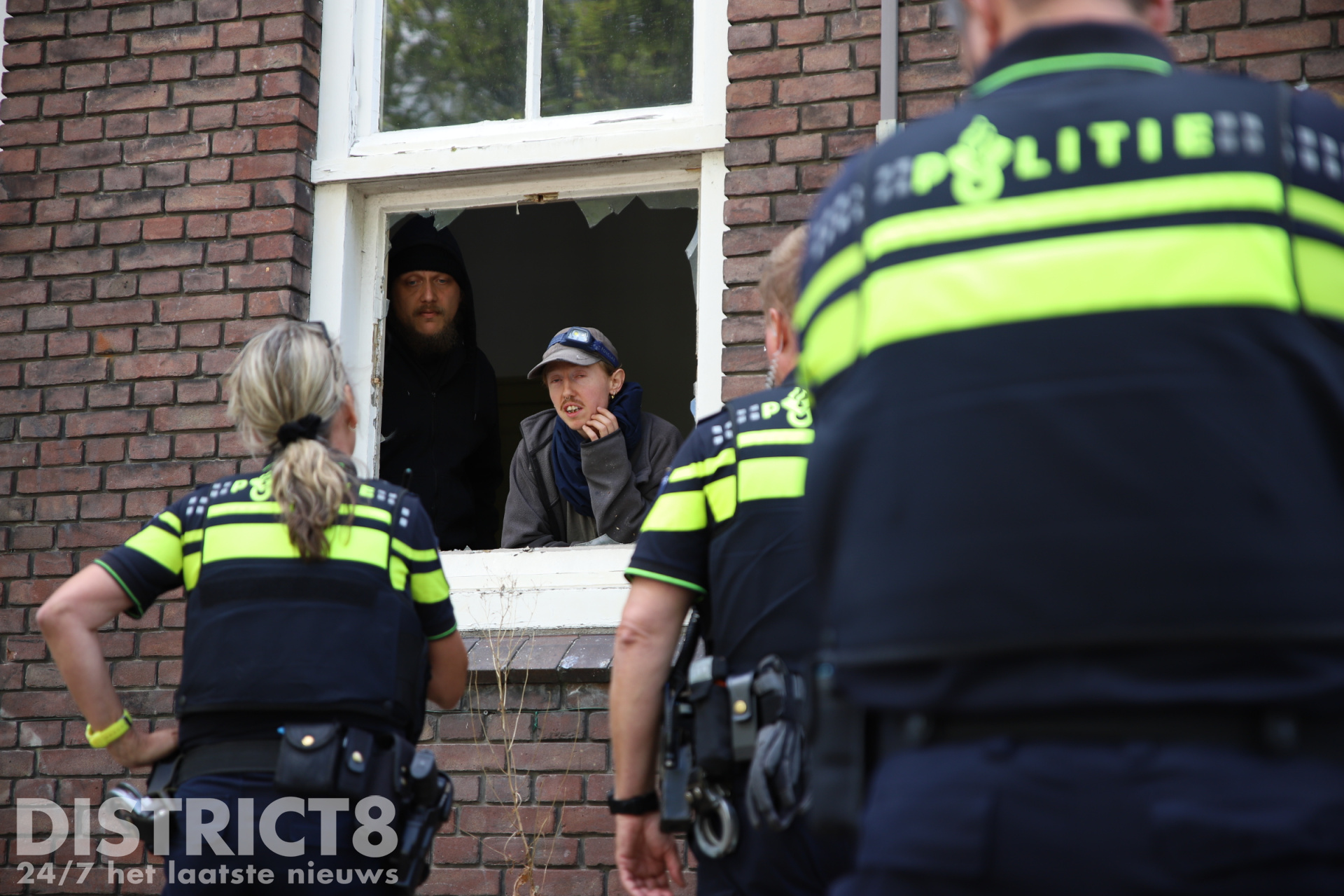 Na een gesprek met de aanwezige krakers kwamen zij naar buiten, waarna zij door de politie werden aangehouden op verdenking van huisvredebreuk. Het ging om twee mannen en twee vrouwen. Twee andere vrouwen, die aan de overkant bij de tramhalte stonden, werden gevorderd het gebied te verlaten.