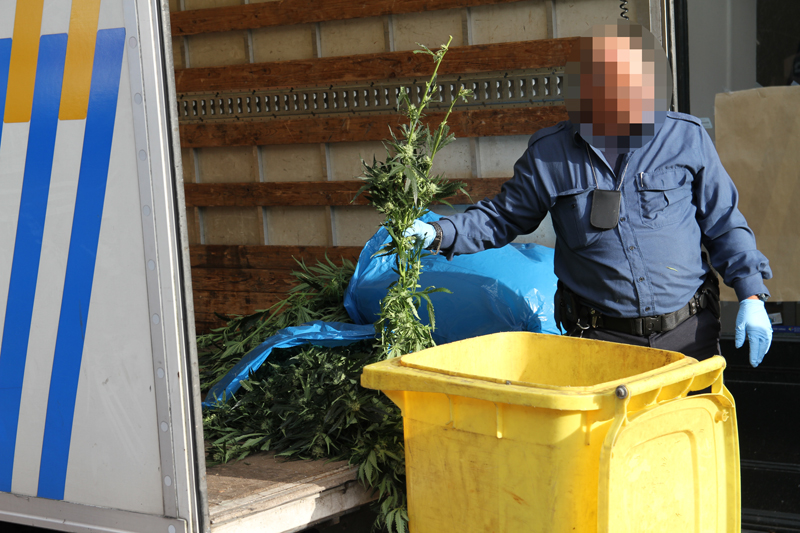 Na het onderzoek door de recherche ter plaatse is de firma EcoLoss ter plaatse gekomen voor het ontmantelen van de kwekerij. Een grote houten kist vol met apparatuur is reeds uit het pand gehaald. De henneptoppen worden ter plaatse vernietigd en dit heeft tot dusver een volle kliko met versnipperde hennep opgeleverd.
