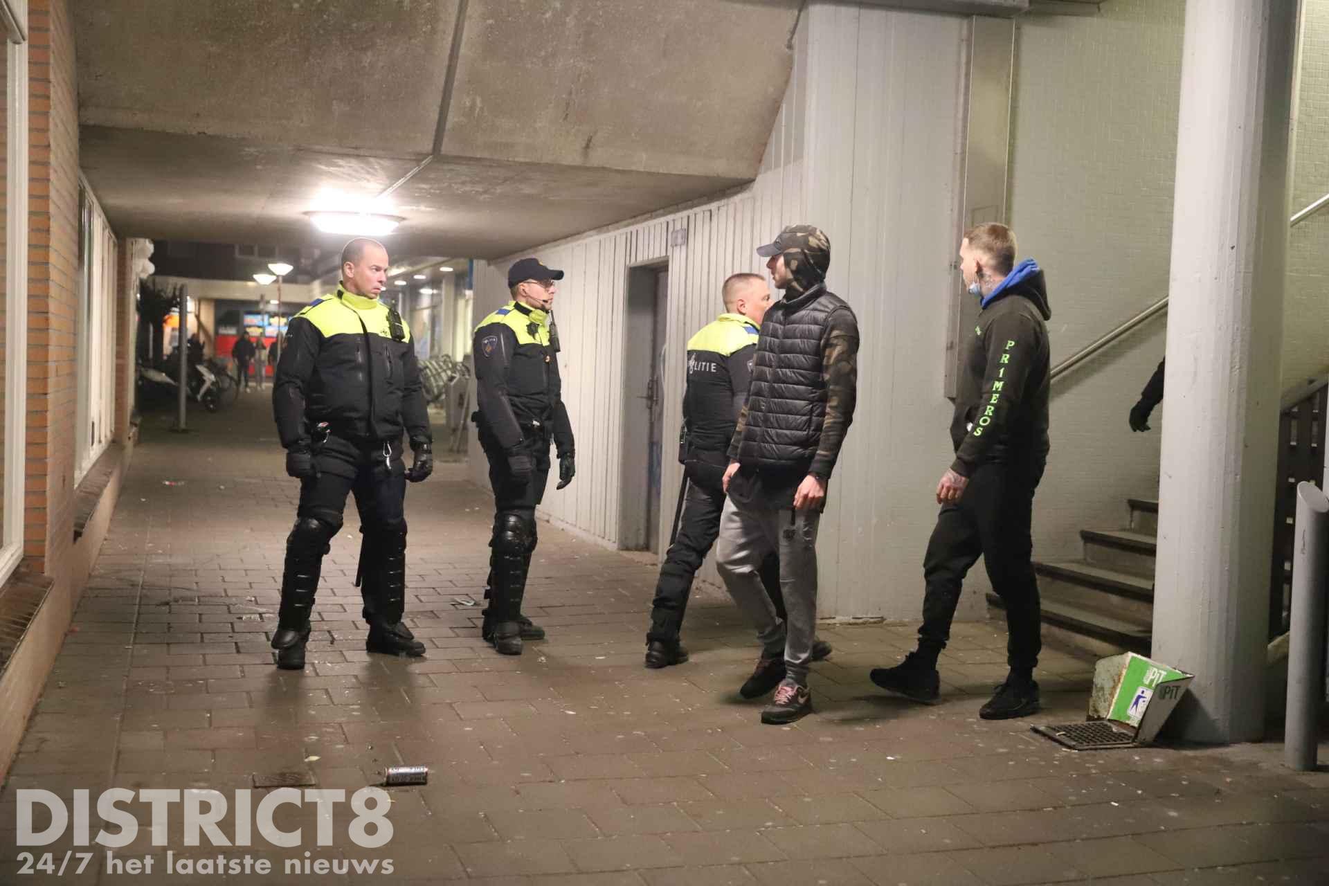 De politie is in grote getalen aanwezig en nadat de wapenstok getrokken was, keerde de rust snel terug. De jongeren zijn gevlucht de wijk in, waar de politie nu nog zichtbaar aanwezig is en diverse jongeren staande houdt om gegevens te noteren.