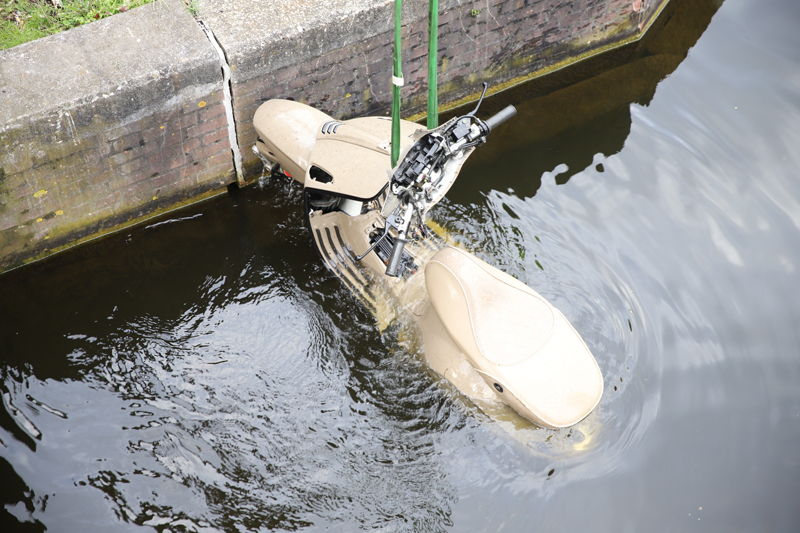 De politie is met de melder meegegaan en trof inderdaad de scooter in het water aan. Omdat er geen sprake was dat er een persoon te water zou zijn, zijn de brandweer en ambulance niet gealarmeerd.