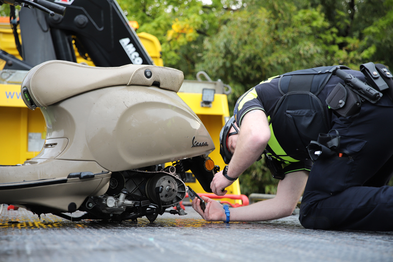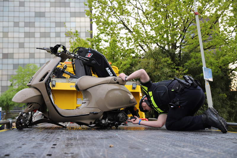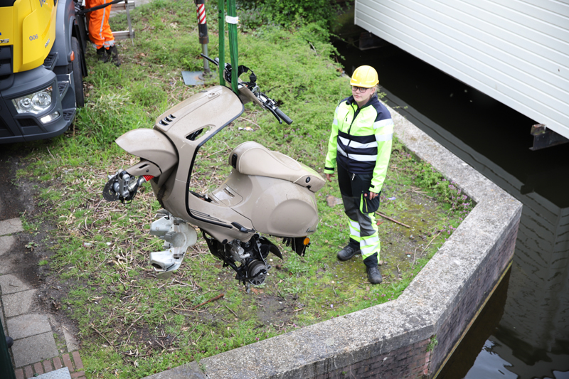 Een berger is ter plaatse gekomen en heeft de scooter uit het water gevist. De scooter was volledig gestript. Na kort onderzoek bleek dat de scooter sinds december 2019 als gestolen is opgegeven.