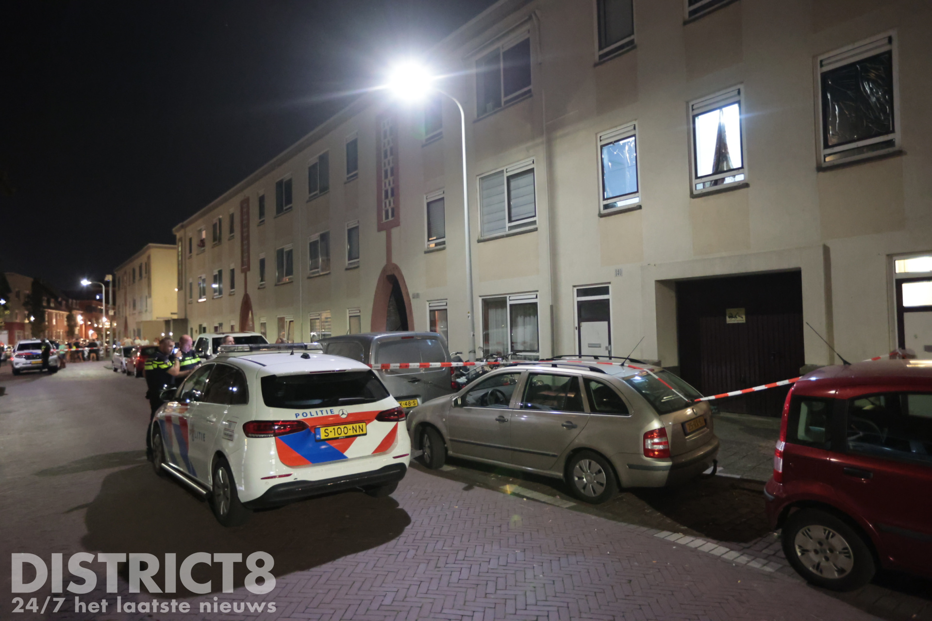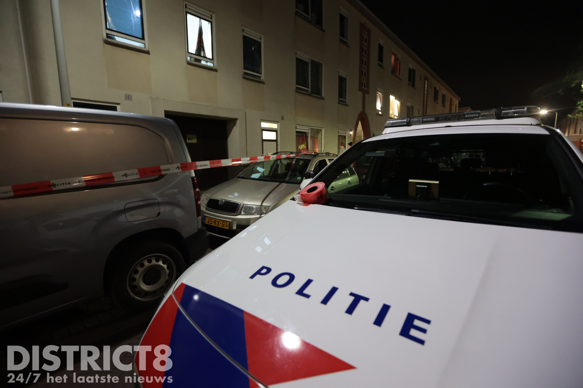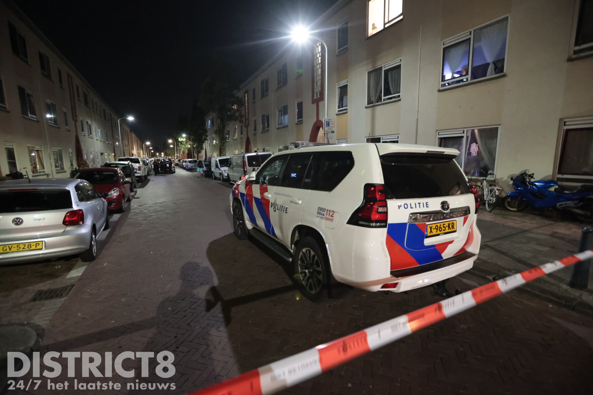 Agenten hebben in kogelwerende vesten de omgeving doorzocht. De politie heeft een gedeelte van de Pluvierstraat afgezet en bij een portiekwoning een plaats delict opgesteld.