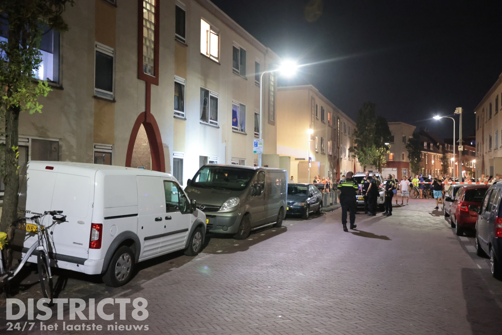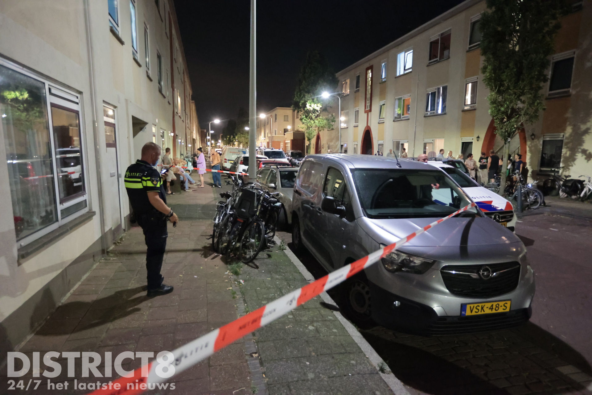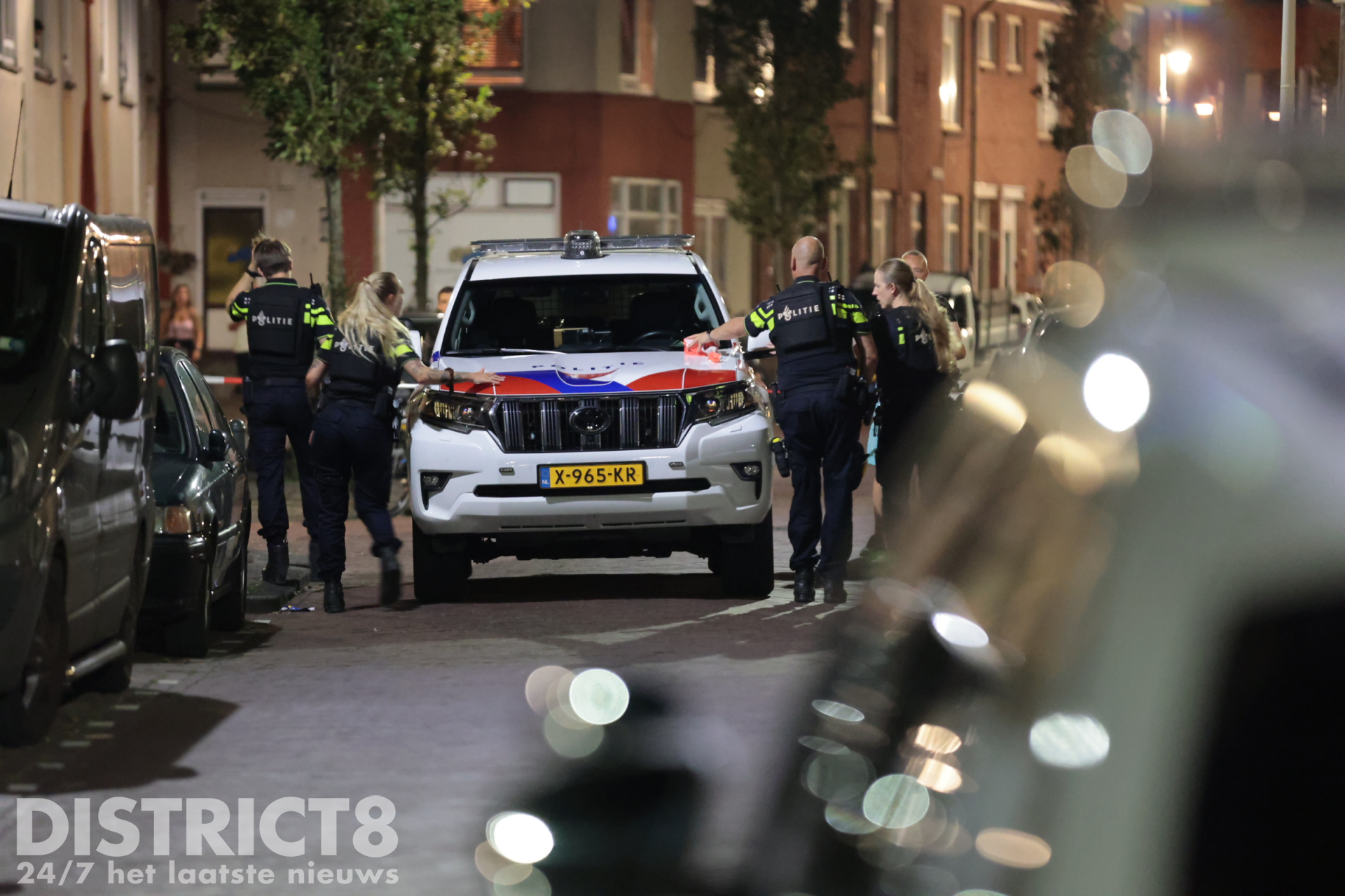 Agenten hebben in kogelwerende vesten de omgeving doorzocht. De politie heeft een gedeelte van de Pluvierstraat afgezet en bij een portiekwoning een plaats delict opgesteld.