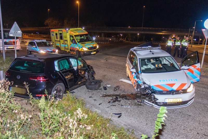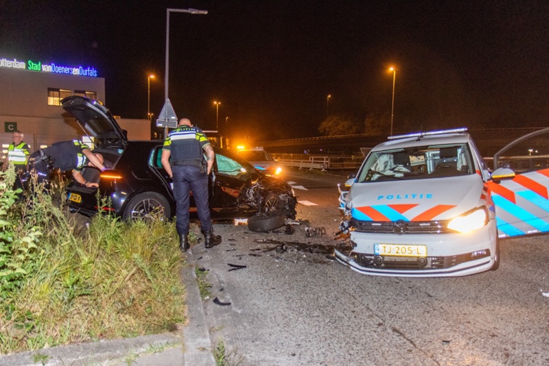 Rotterdam – In de nacht van vrijdag op zaterdag 31 augustus is een politieachtervolging geëindigd in een ongeval met twee politiewagens.