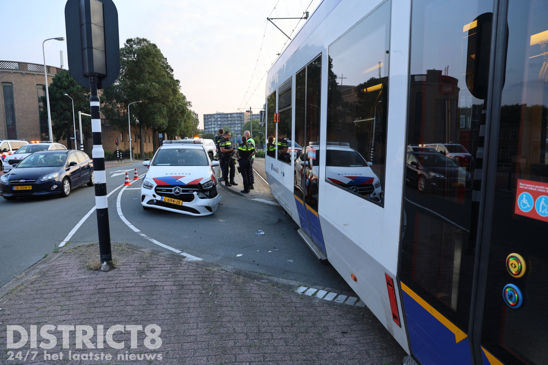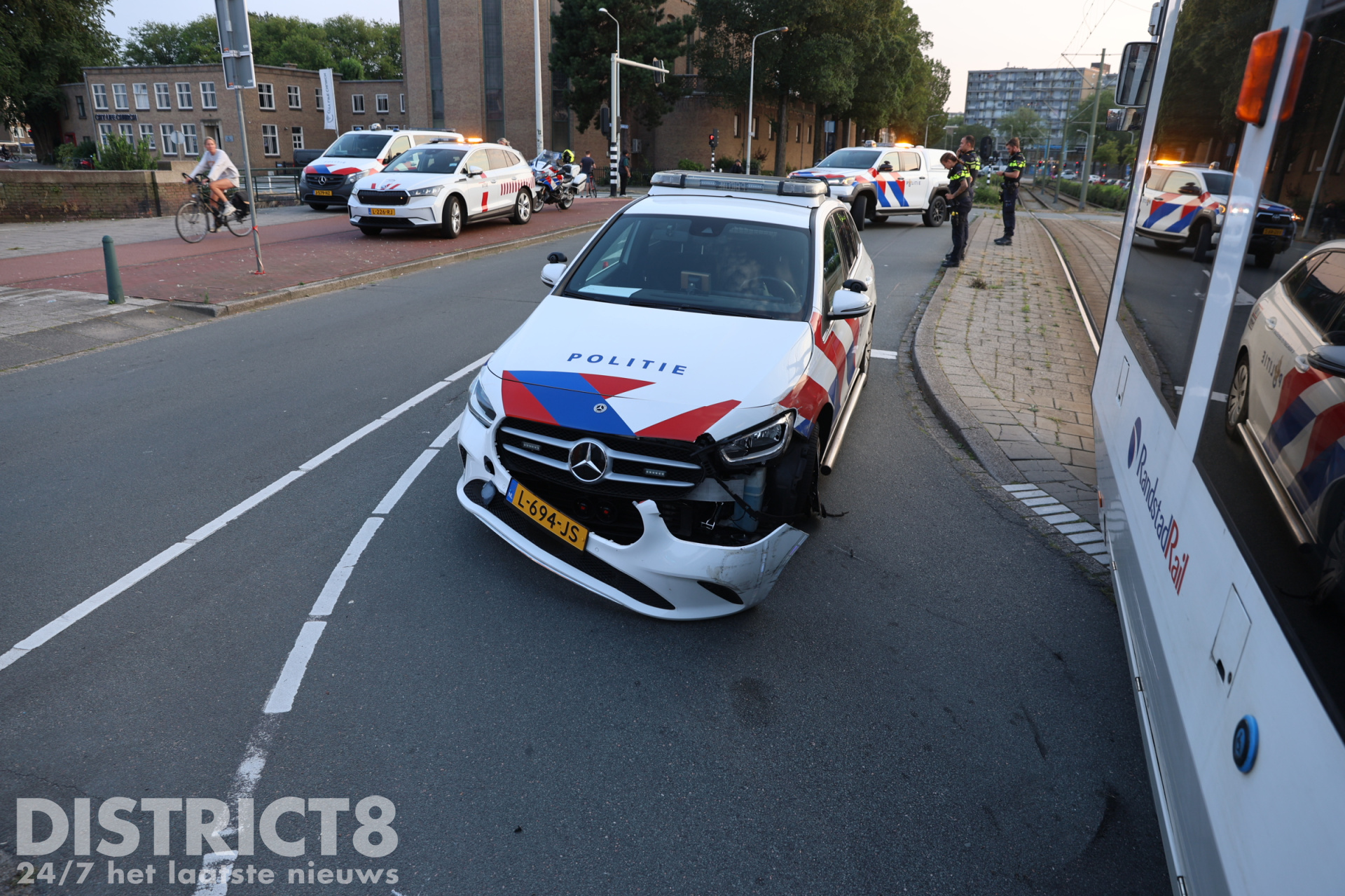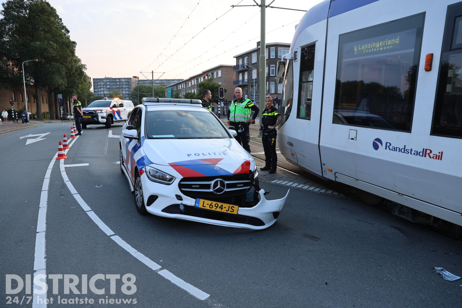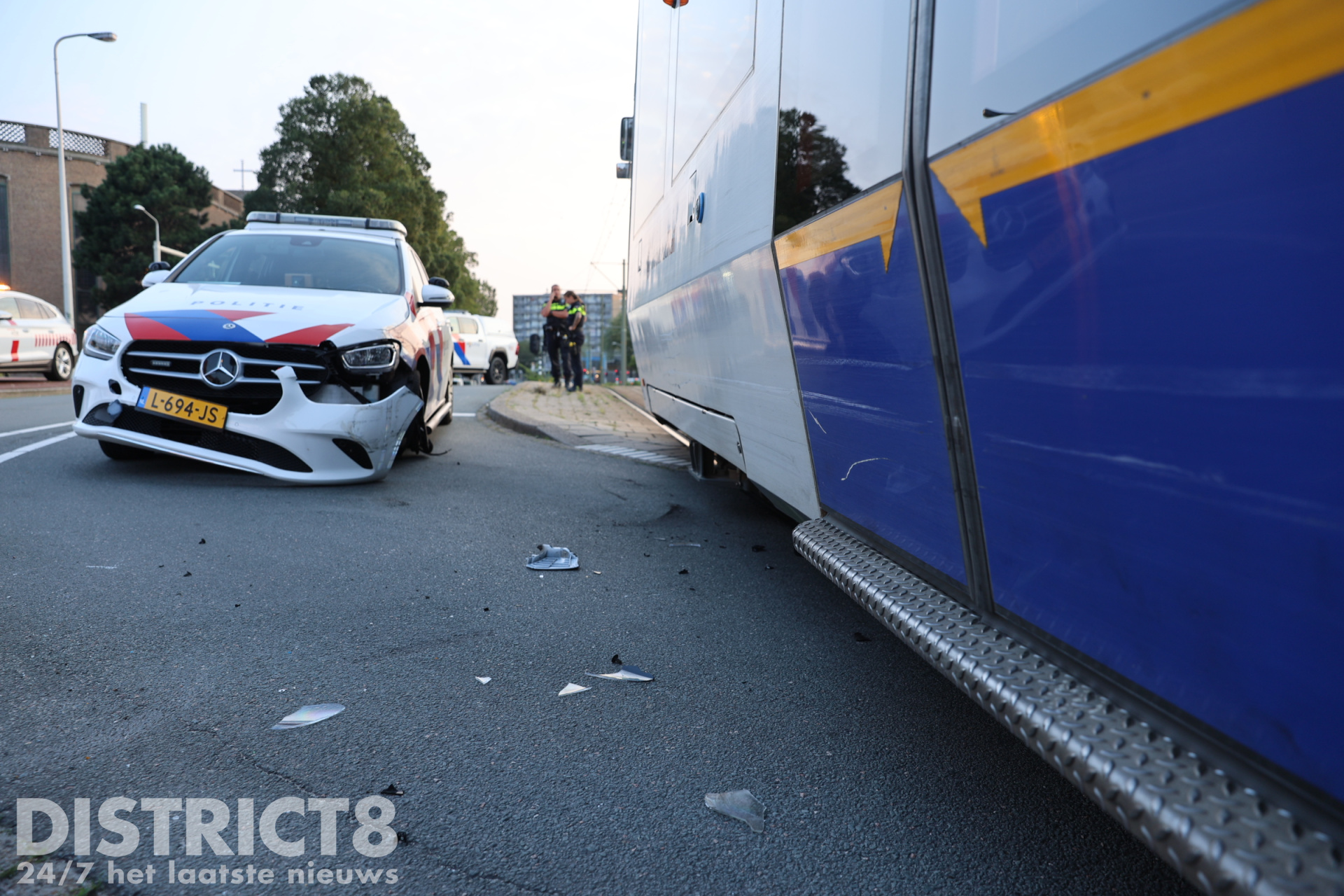 Den Haag – Op de kruising van de Escamplaan en de Soestdijksekade in Den Haag heeft donderdagavond 1 augustus een aanrijding plaatsgevonden. Op de kruising kwam een politievoertuig in botsing met een tram.