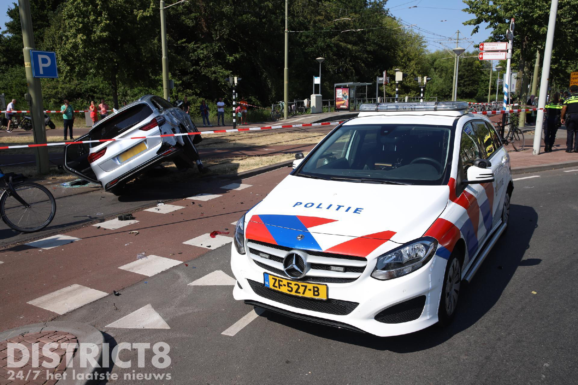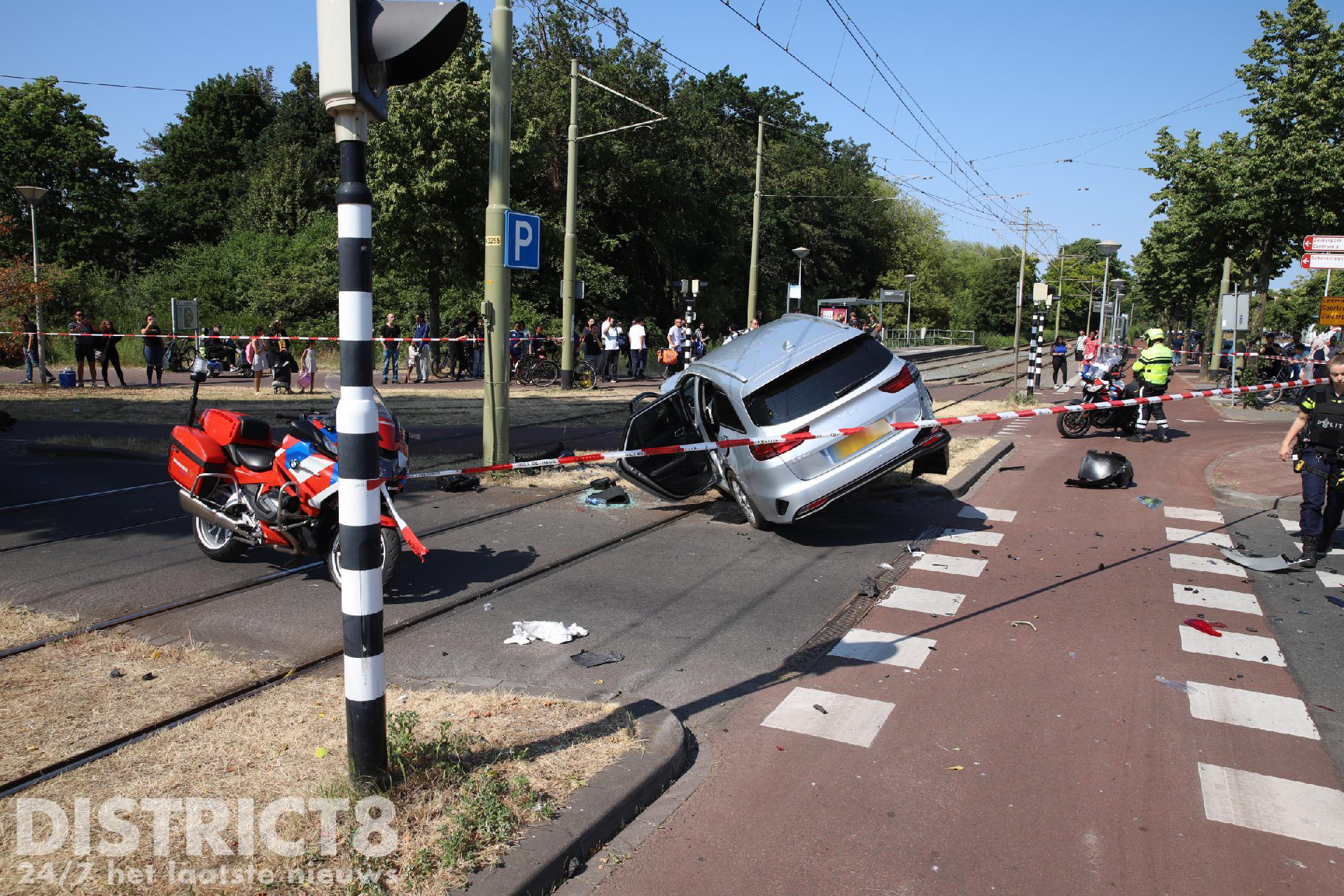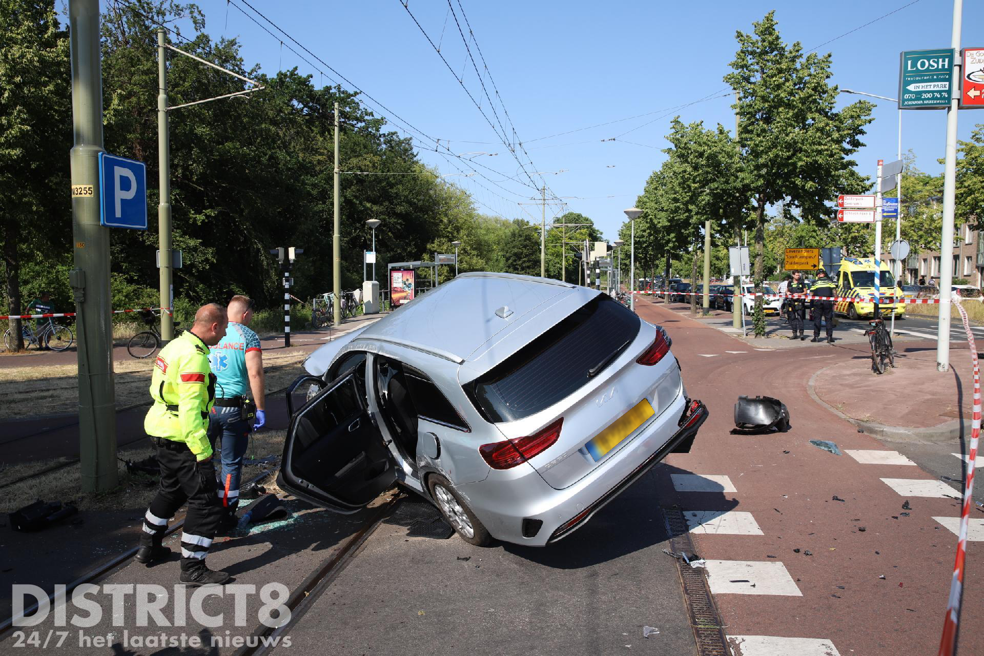Den Haag – Op de Melis Stokelaan bij de ingang naar het Zuiderpark in Den Haag heeft vrijdagmiddag 16 juni een flinke aanrijding plaatsgevonden. Bij de aanrijding raakte een agent gewond.