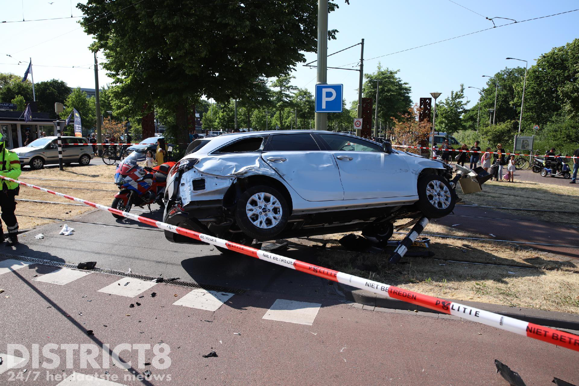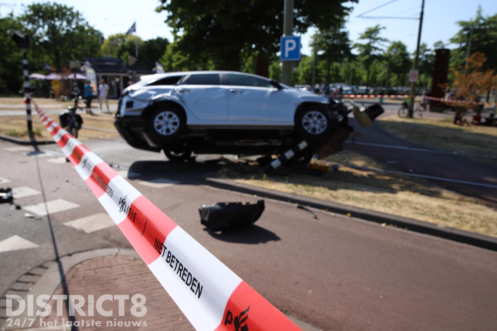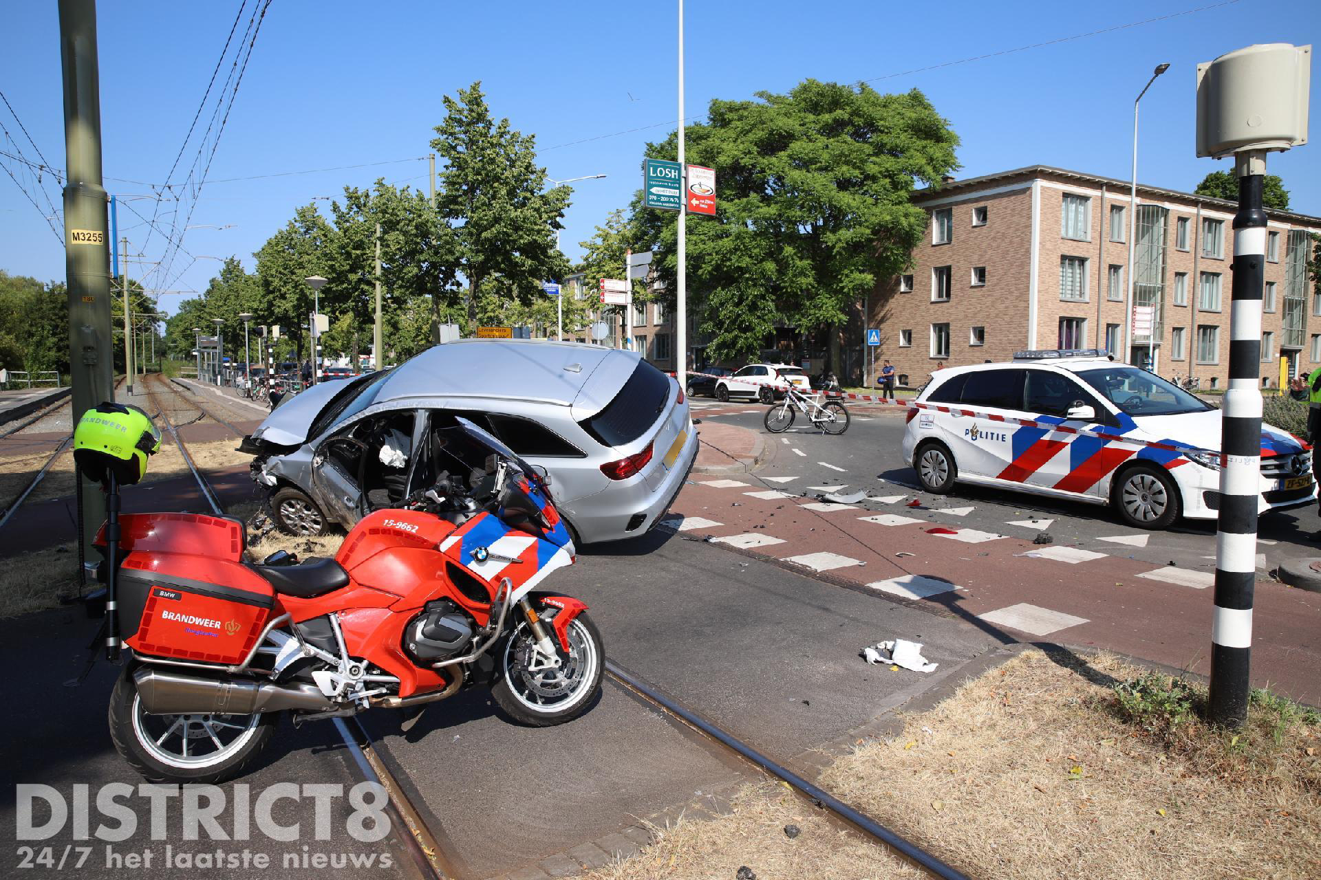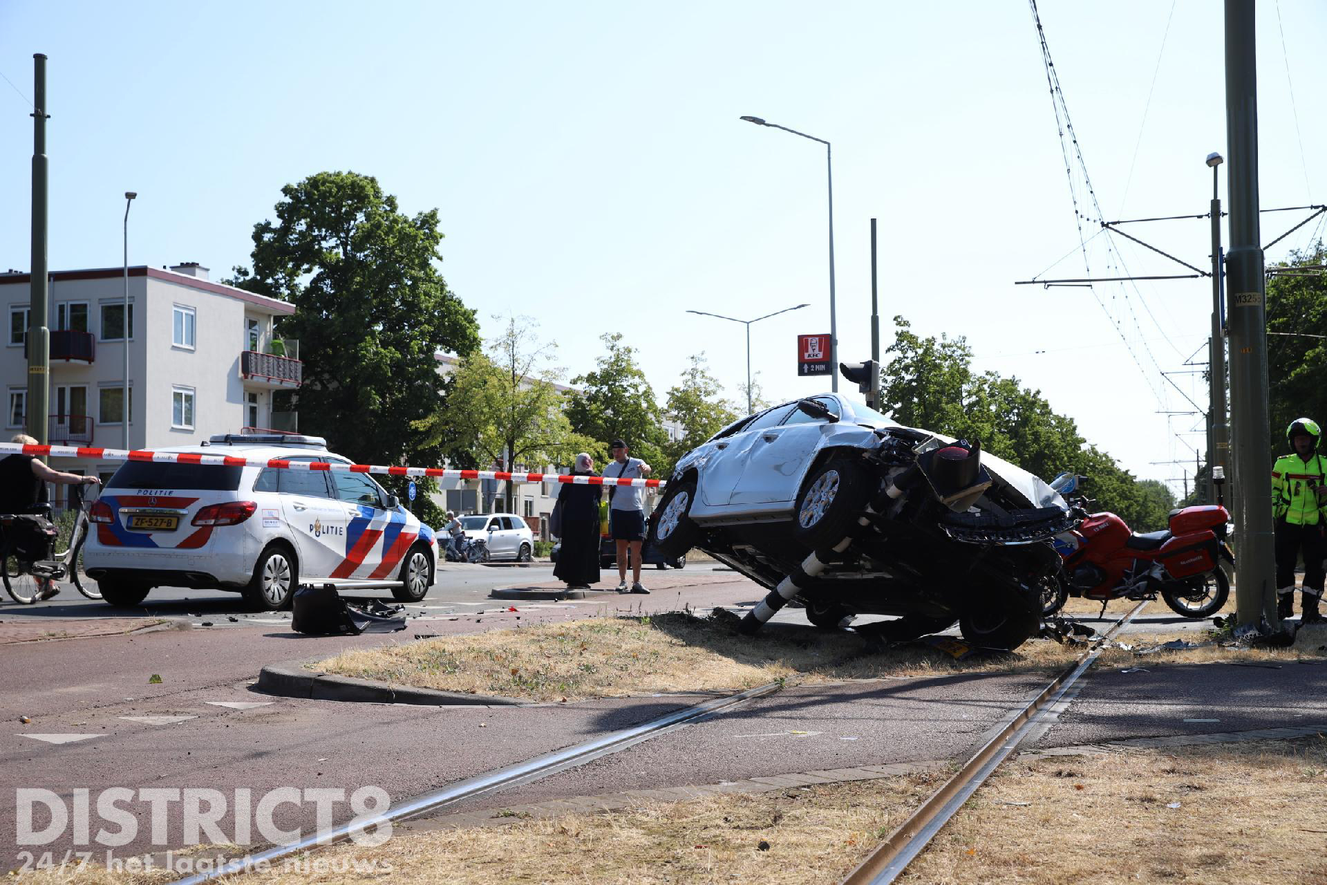 Den Haag – Op de Melis Stokelaan bij de ingang naar het Zuiderpark in Den Haag heeft vrijdagmiddag 16 juni een flinke aanrijding plaatsgevonden. Bij de aanrijding raakte een agent gewond.