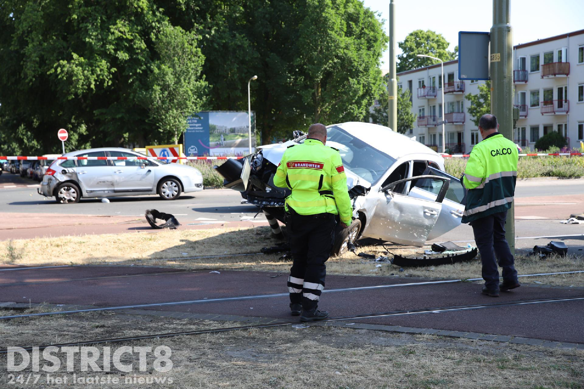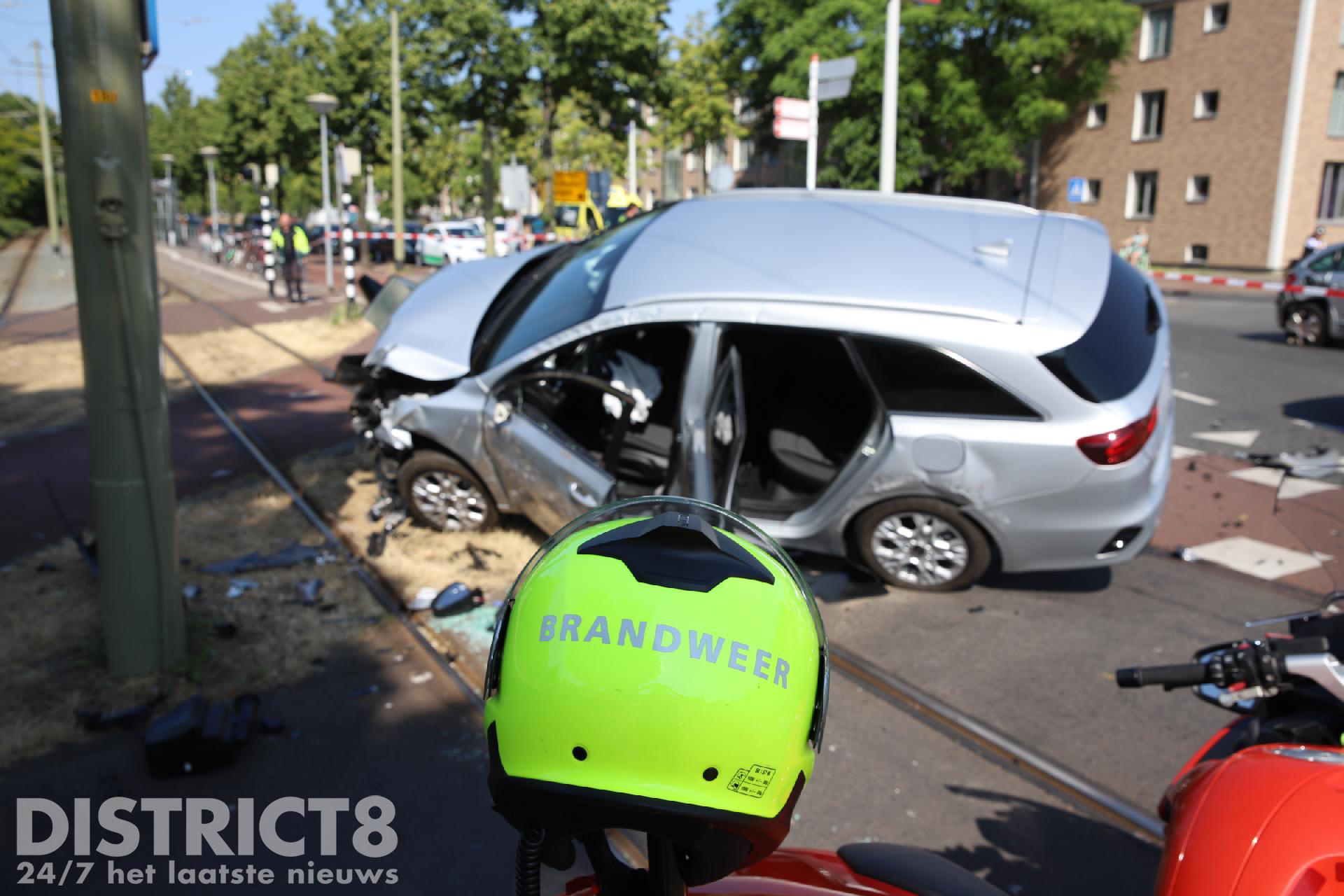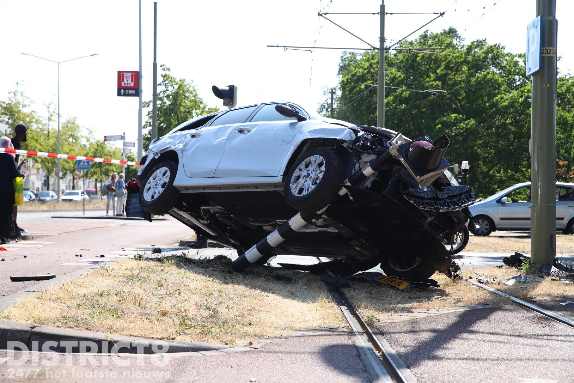 Op de Melis Stokelaan net voor de rotonde ter hoogte van het Zuiderpark ging het mis. Meerdere voertuigen, waaronder een burgervoertuig van de politie kwamen met elkaar in botsing. Het politievoertuig ramde door de aanrijding een verkeerslicht en kwam op een paal tot stilstand.