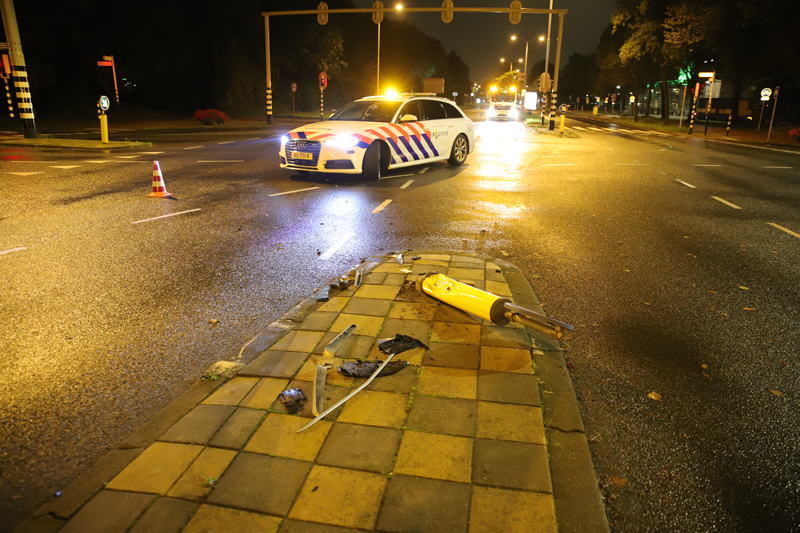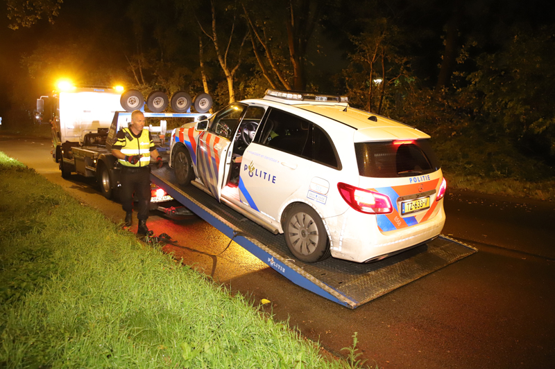 De personenauto kwam na de aanrijding met het politievoertuig tegen een paaltje terecht. Bij het ongeval raakte niemand gewond.